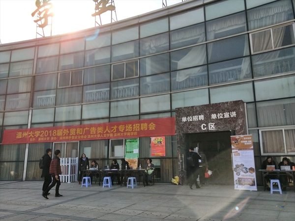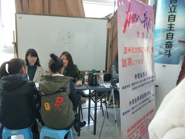 本次招聘会吸引了浙江省对外服务公司、温州三角洲投资顾问有限公司等数十家企业前来招聘,2018届毕业生和大二大三在校生都积极应聘。每家企业的招聘人员都井然有序地进行了招聘会的准备工作,招聘会现场如火如荼,同学们和招聘公司进行了面对面的交流,就公司各项信息和个人要求等进行洽谈。