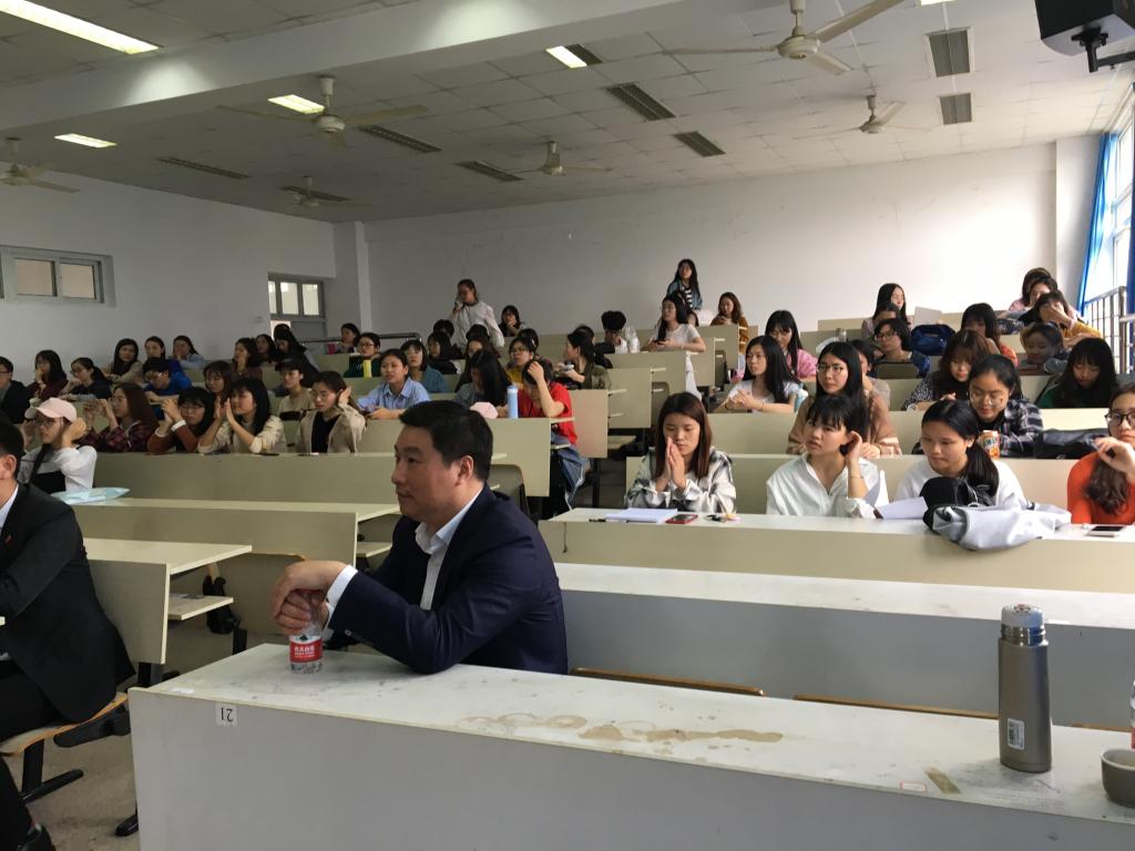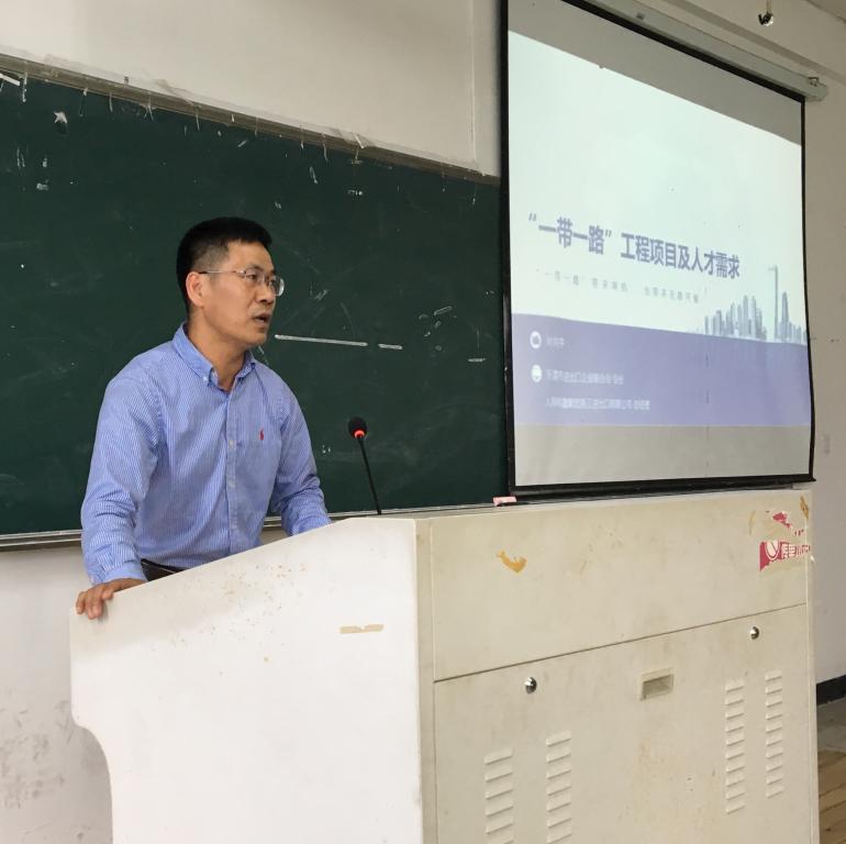 在讲座中,叶向宇总经理通过直观的图表数据,从海外承接工程的前期准备(如融资、投保等)、建设期工作(如分包、运输、管理等)以及后期工作(如核算、维保等)向在座同学详实生动地介绍了具有象征意义的“一带一路”工程的完整案例,以及“一带一路”建设中商务沟通、管理、语言服务的需求。叶总风趣幽默,深入浅出,不仅讲解了EPC工程项目,也传递了创新、多赢、可持续性的理念。讲座结束,同学们纷纷报以热烈的掌声,感谢叶总的分享,也表达了到企业参观学习的强烈愿望。