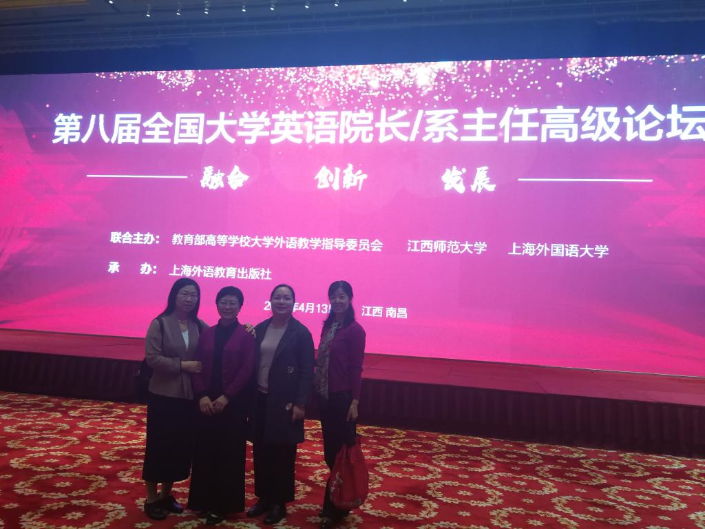 第八届全国大学英语院长/系主任高级论坛于2018年4月12-15日在江西南昌举行,本次会议的主题是“融合、创新、发展”,会议由教育部高等财神捕鱼 大学外语教学指导委员会、江西师范大学、上海外国语大学联合主办,上海外语教育出版社承办。财神捕鱼 朱晓申副院长、大学英语教研室主任及部分教师参加了此次高级论坛。