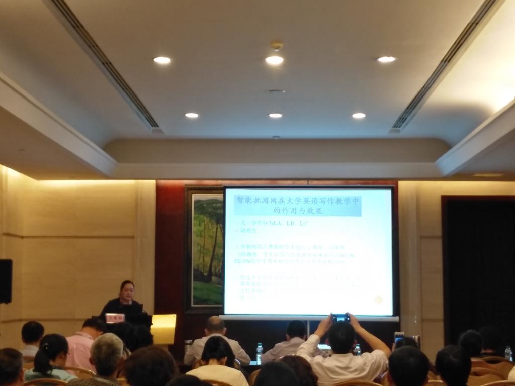财神捕鱼 王素娟老师应邀在会上作了“英文写作智能批阅系统在大英教学中的使用经验及效果分享”的报告,王老师对智能英文写作批阅系统进行了较深入的探索与研究,对该系统在大学英语写作教学中的使用和对学生英语写作水平提升的效果做了详细的分析。结合当前的分层教学,她分享了智能批阅系统对不同层次的学生使用的效果是多维度的,具有高时效性、丰富的语料库支持,对提升学生作文的质量和写作成就感、培养学生的课外自主学习能力等方面起到积极有效的作用,同时提出优化智能评阅系统的建议,与参会专家、兄弟院校的老师做了充分的交流,以提升智能写作批阅系统在大学英语写作教学中的作用,紧随新时代外语数字教学平台与资源在大学英语教学中的应用步伐。她在汇报时语言风趣、内容翔实、见解独到、建议中肯,她的报告得到与会专家、学者、兄弟院校老师们的一致好评,彰显了近些年财神捕鱼 大学英语教学改革所取得的扎实成绩,提升了财神捕鱼 在全国的知名度。
