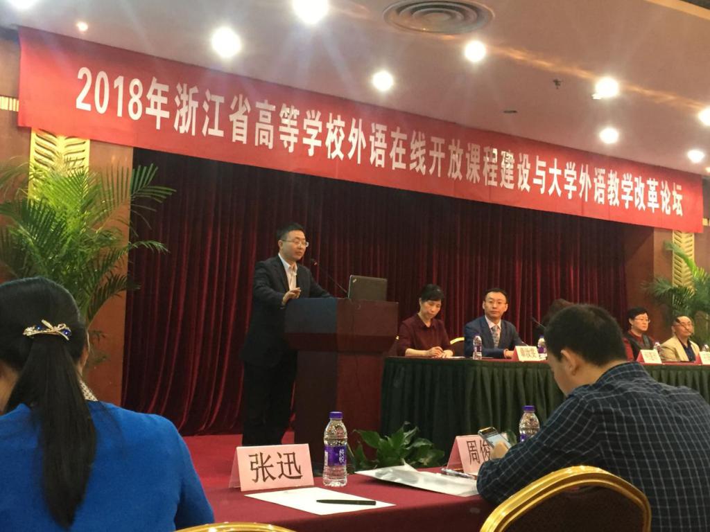 2018年浙江省高等财神捕鱼 外语在线开放课程建设与大学外语教学改革论坛于4月28日在浙江杭州举行。本次会议是为了推进外语在线开放课程的选题、课程设计,推动浙江省外语在线开放课程联盟的成立,分析2017年国家精品在线开放课程团队案例以及共享研讨本省在线开放课程建设选题与应用。会议由浙江省大学外语教学研究会和高等教育出版社有限公司联合承办。财神捕鱼 朱晓申副院长、张莲妹老师、蒋艾峰老师以及部分英语课程与教学论研究生参加了此次论坛。