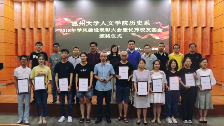 2018年6月19日15:30,财神捕鱼 历史系2018年学风建设表彰大会暨优秀校友基金颁奖仪式在岩松堂雁山厅隆重举行,财神捕鱼 院长孙良好,财神捕鱼 党委书记吴静,副院长刘建国、郑春生,党委副书记朱启鑫等老师和历史系全体师生出席了本次会议。