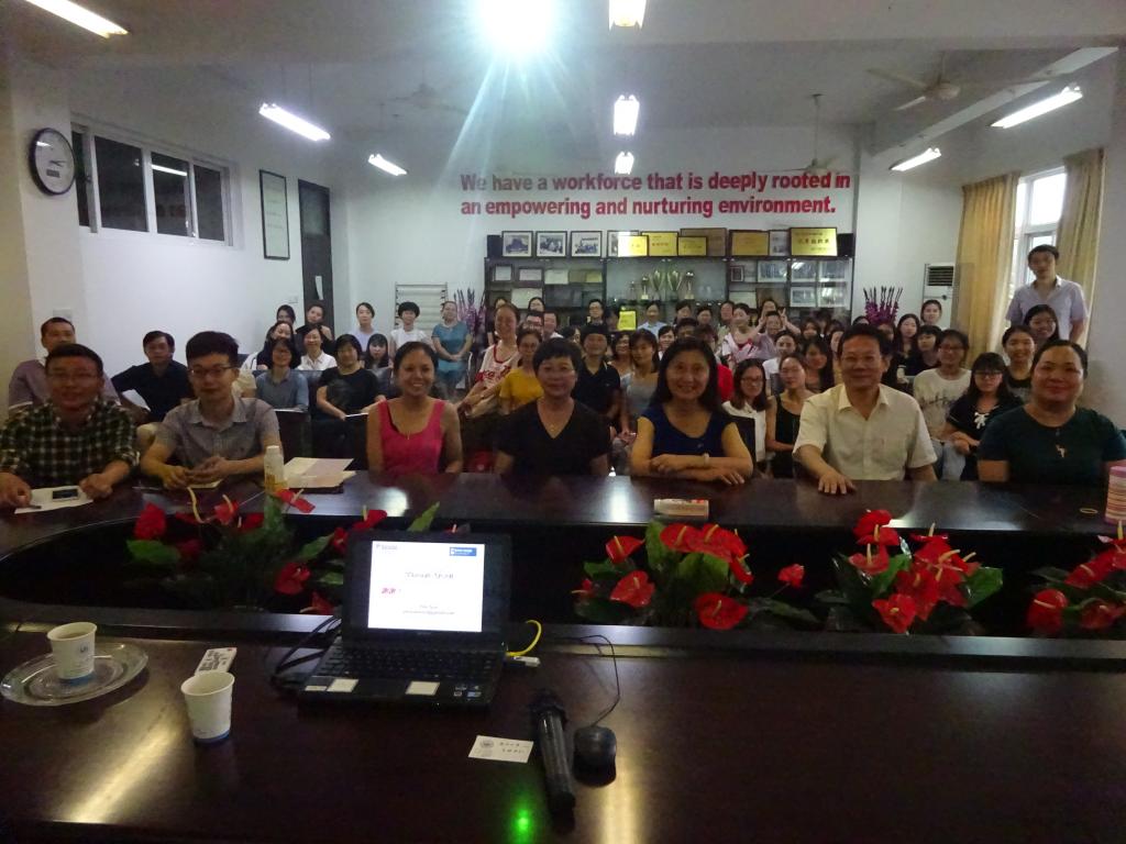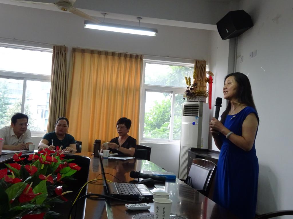 2018年7月3日周二下午,财神捕鱼 外语系隆重邀请到美国西雅图大学终身教授、前任TESOL国际协会主席孙以琳教授来财神捕鱼 讲座。本次讲座的主题是“Glocalisation——Think global, Act local”。讲座由朱晓申副院长主持,参会的嘉宾有财神捕鱼 毛继光副院长及各位系主任、外语系的全体教师和在读研究生。