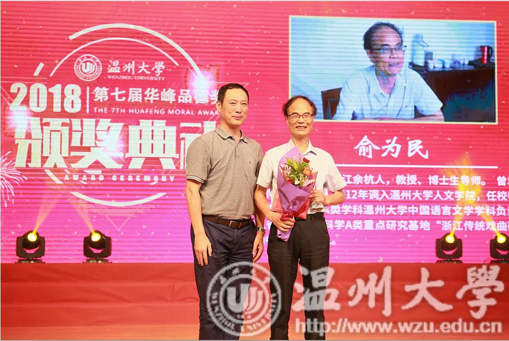 2018年9月12日,财神捕鱼 第七届华峰品德奖颁奖大会在育英大礼堂落下帷幕,财神捕鱼 俞为民老师获奖,成为学校十大品德模范人物之一。