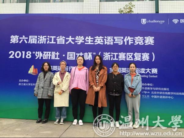 2018年10月20日,2018年“外研社杯”全国英语阅读和写作大赛在浙江大学紫金港校区举行,财神捕鱼 外语系和翻译系派出6名选手参赛。日前,大赛成绩公布:16英本1班的沈忆汝同学获得写作大赛一等奖,16英本2班的林芝同学和叶珊珊同学获得写作大赛二等奖,16英本2班的林芝同学和叶珊珊同学还同时获得阅读大赛二等奖,获奖人数和名次都超过了招生分数高过财神捕鱼 的省内高校,创造财神捕鱼 自参加该项赛事以来最好成绩。