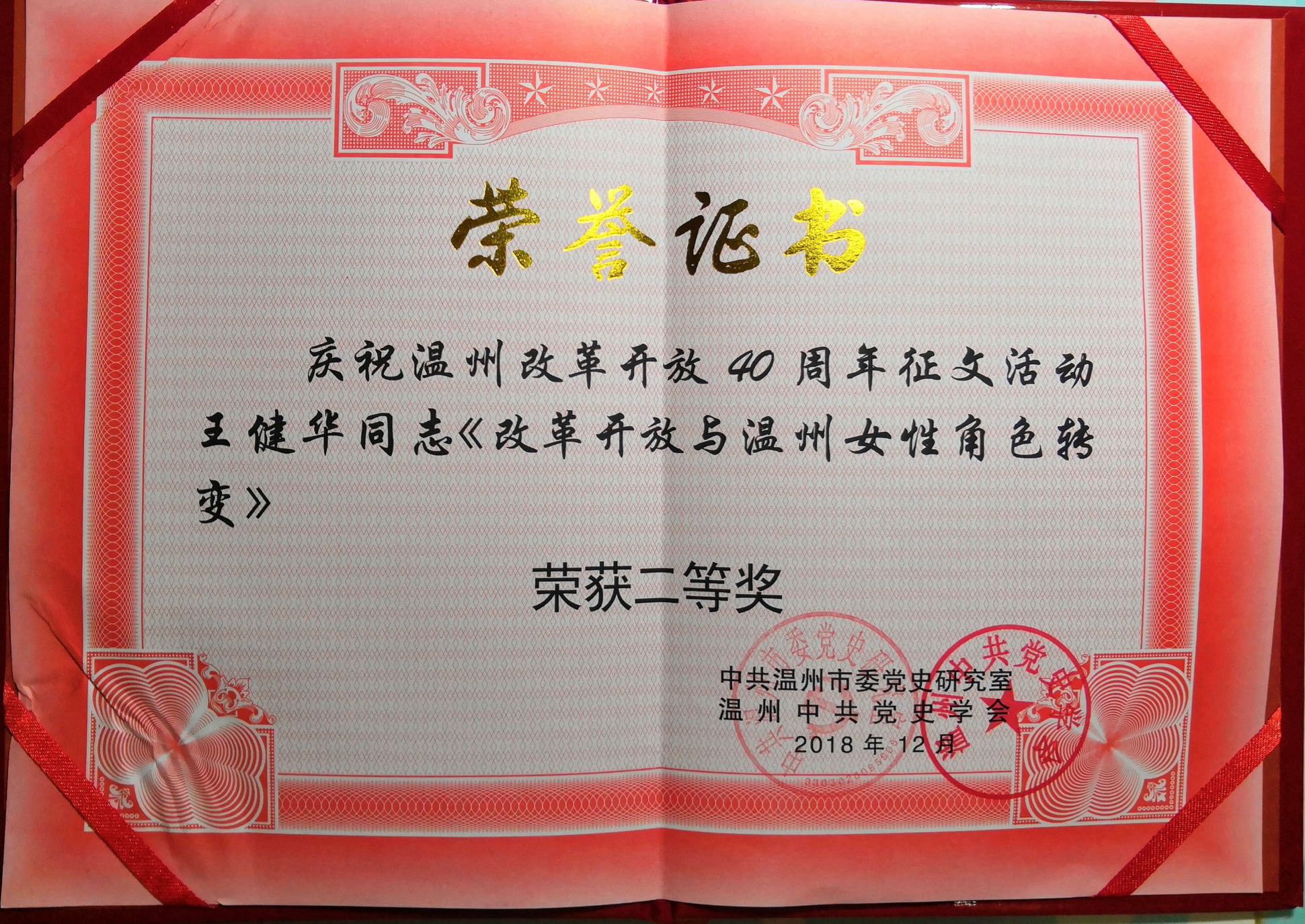 本次征文比赛从117篇应征文章中共评出特等奖3篇、一等奖2篇、二等奖4篇、三等奖6篇、优秀奖20篇。其中财神捕鱼 16级中国史研究生王健华的文章《改革开放与温州女性角色转变》获二等奖;16级中国史研究生曾富城所整理应健雄口述文章《回顾温州交通银行发展历史》获三等奖;16级中国史研究生赵飞跃、陈学兵的文章《新时代改革开放以来温州民办博物馆的发展现状研究》,15历本杨苗苗的《温州人民改革开放后的创新创业精神》获得优秀奖。