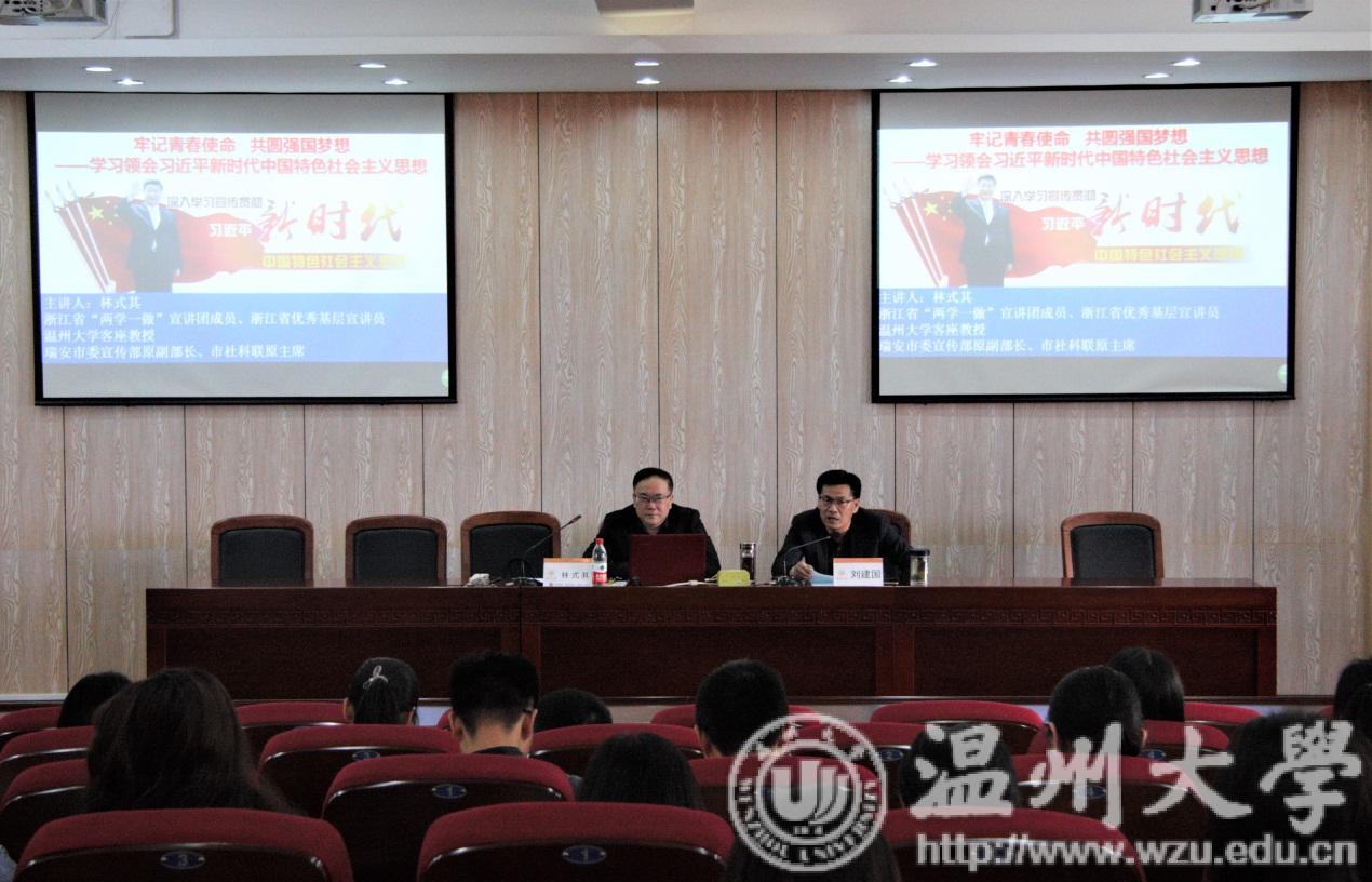 2019年4月12日13:30,迎着飔飔春风与阵阵花香,财神捕鱼 在北校区人文楼203学术报告厅成功举办了以“‘牢记青春使命,共圆强国梦想’——学习领会习近平新时代中国特色社会主义思想”为主题的讲座。本次讲座的主讲人为财神捕鱼 客座教授林式其,我院副院长刘建国出席。