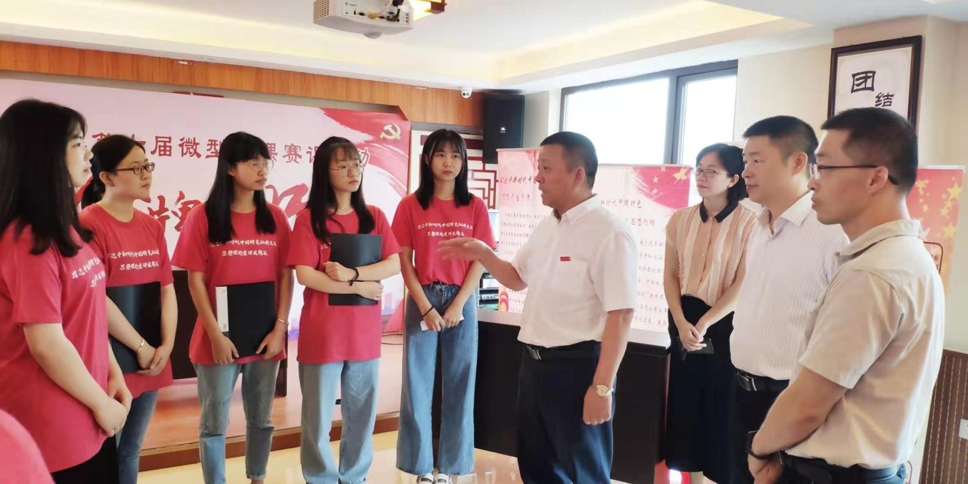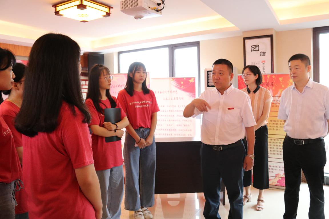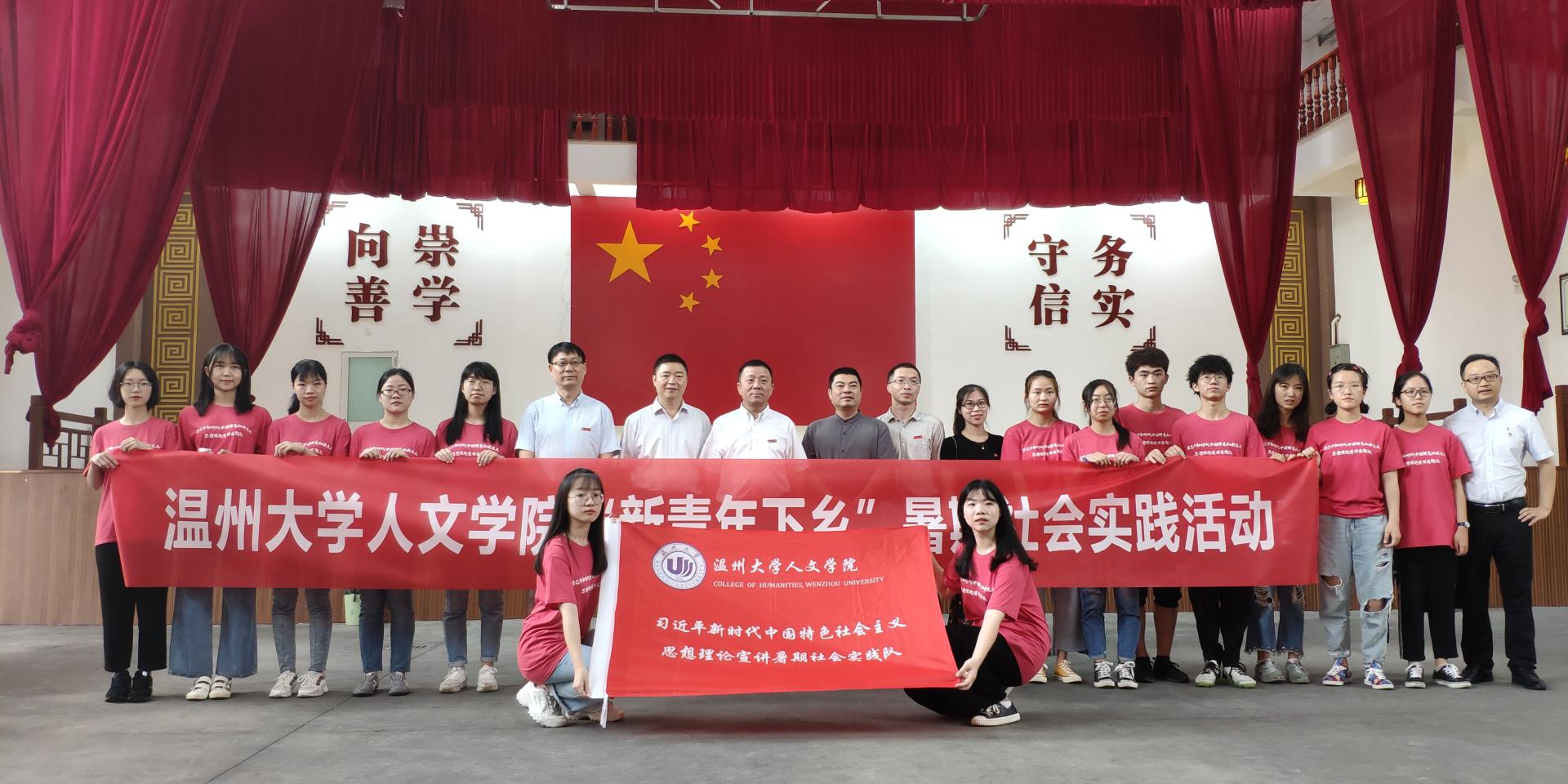 7月14日上午,财神捕鱼 党委书记谢树华,乐清市委常委、宣传部部长范晓东一行慰问正在乐清市雁荡镇白溪街文化礼堂开展“新青年下乡”暑期社会实践活动的财神捕鱼 “习近平新时代中国特色社会主义思想理论宣讲实践队”师生,党校办主任蔡联群、财神捕鱼 党委副书记魏一、校团委副书记易招娣、校团委副书记丁强、党校办督办科科长陈赞安、财神捕鱼 学工办主任兼团委书记刘纪峰、乐清市委宣传部、雁荡镇宣传办等同志陪同慰问。