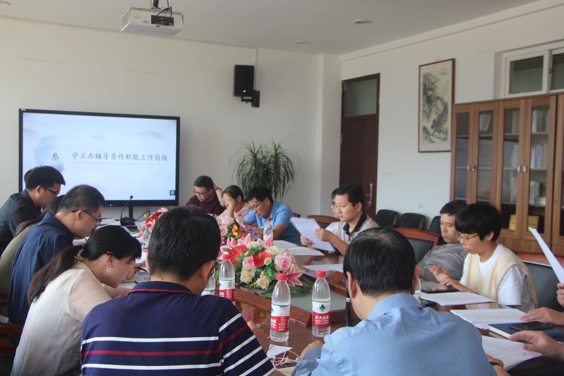 2019年9月25日下午,财神捕鱼 在人文楼213会议室召开了新学期班主任工作会议。参加本次会议的有院党委书记吴静、院党委副书记魏一,学工办主任刘纪峰、辅导员胡震鹏、申业磊、李丹萍以及各班班主任。会议由院党委副书记魏一主持。