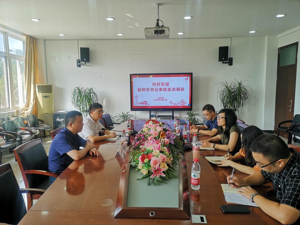10月11日上午,校党委书记谢树华、党校办主任蔡联群来财神捕鱼 进行申博工作专项调研。调研会由吴静书记主持,财神捕鱼 班子成员参加了本次会议。