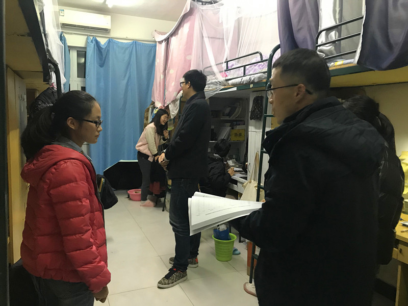开展了寝室安全大检查活动。院党委副书记魏一、学工办主任刘纪峰、辅导员申业磊、李丹萍一行赴超豪学区走访检查学生寝室。