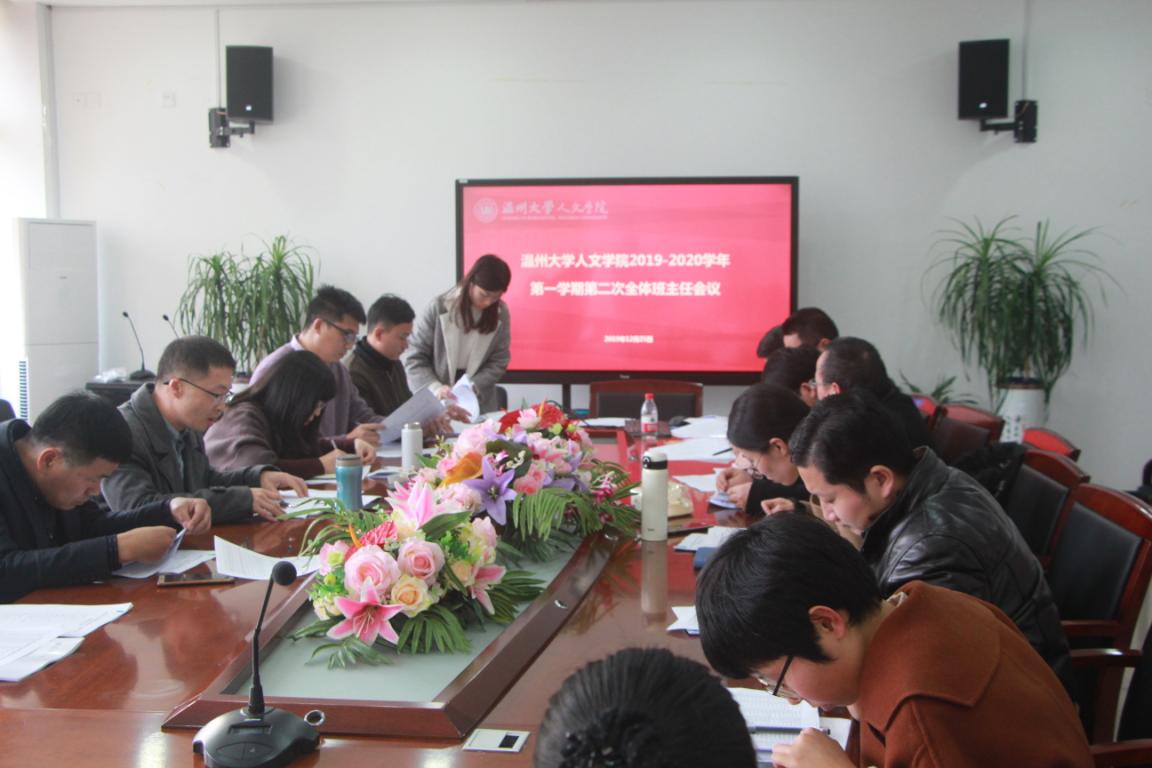 12月25日15:30,财神捕鱼 2019-2020学年第一学期第二次全体班主任会议于人文楼213会议室举行。院党委书记吴静、党委副书记魏一、全体班主任、全体辅导员出席本次会议。