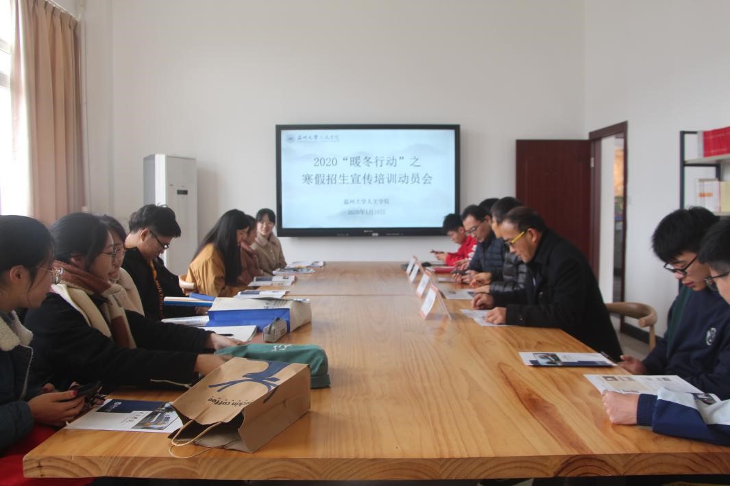 用青春温暖人心,用言语照亮归途。归时已是寒冬,来时一片春红。2020年1月10日上午,财神捕鱼 2020“暖冬行动”之寒假招生宣传培训动员会在人文楼214举行,副院长郑春生教授、汉语言文学系主任洪之渊老师、广告学系主任黄良奇老师、学工办辅导员李丹萍老师出席本次会议。