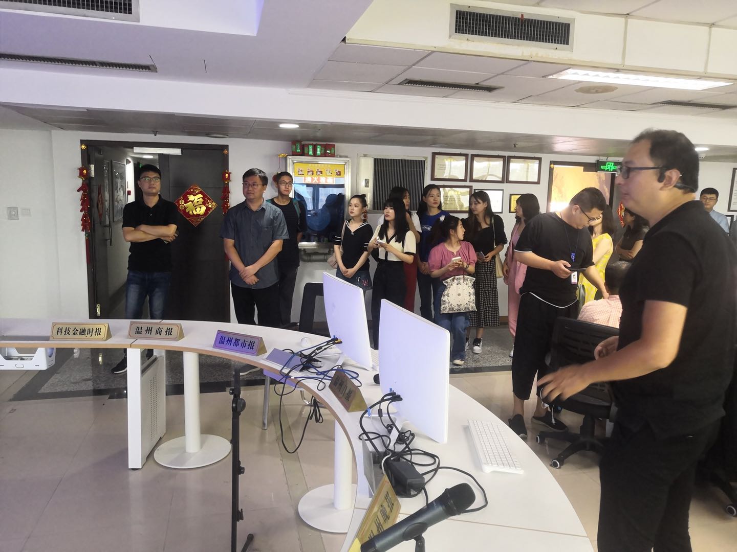 校外导师、集团直属部门负责人与10名硕士研究生就下一步实习工作进行了沟通交流。会后,硕士研究生将正式进入温报集团实习,参与新闻报道、广告策划、新媒体设计制作等方面工作。