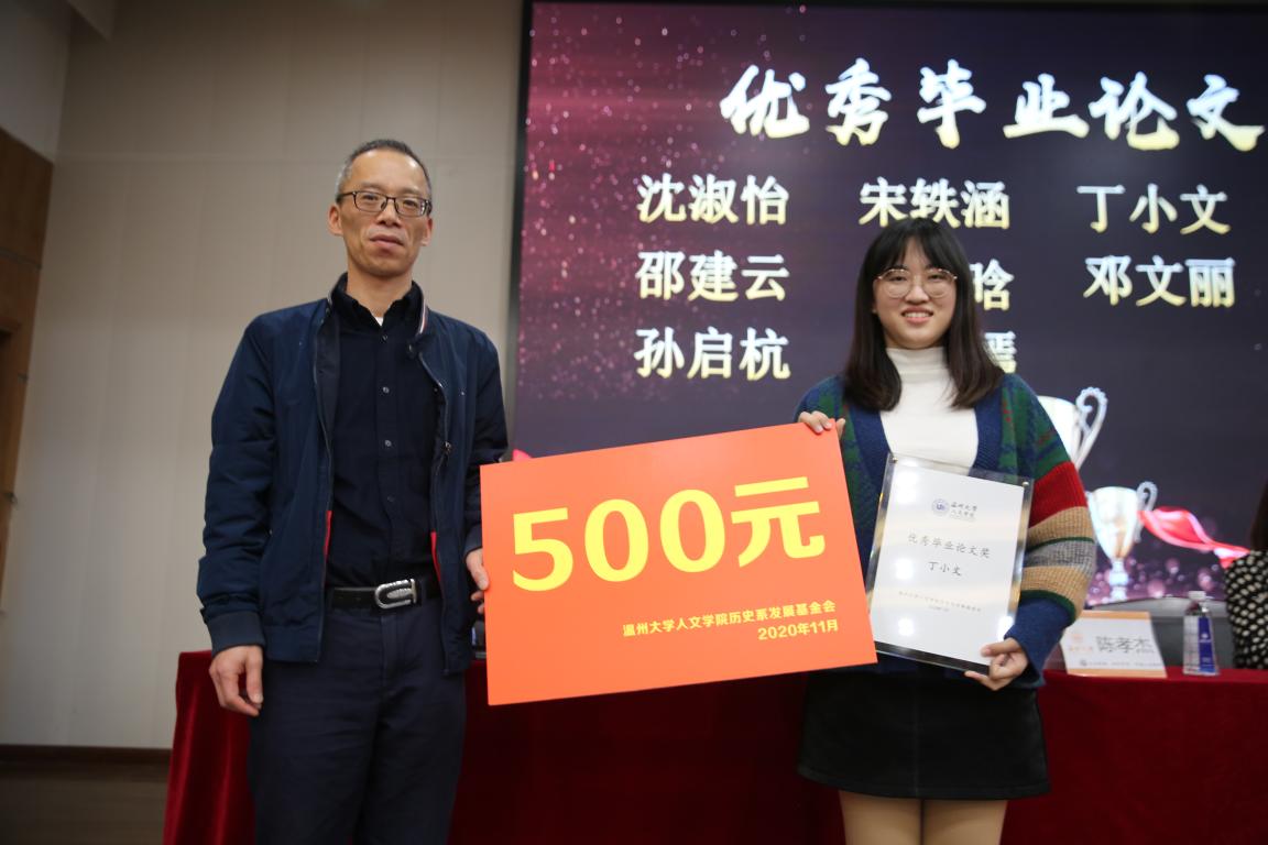颁奖环节由副书记魏一老师宣读获奖名单。奖项分为优秀论文奖、学术成果优秀奖、学科竞赛表现奖、考研贡献奖和考博贡献奖以及教师特别奖。获得教师特别奖的蔡瑞霞老师回顾自己的从教生涯,特别感谢历史系能够给予自此项荣誉。由于今年的疫情,一些获奖者没能参加此次颁奖仪式。他们用视频的方式表达了获得奖项的荣幸和对母校的感激之情。在经验分享环节,邵建云、倪羽筝、王红三位同学各自对考研、师范技能和考博进行了经验分享。