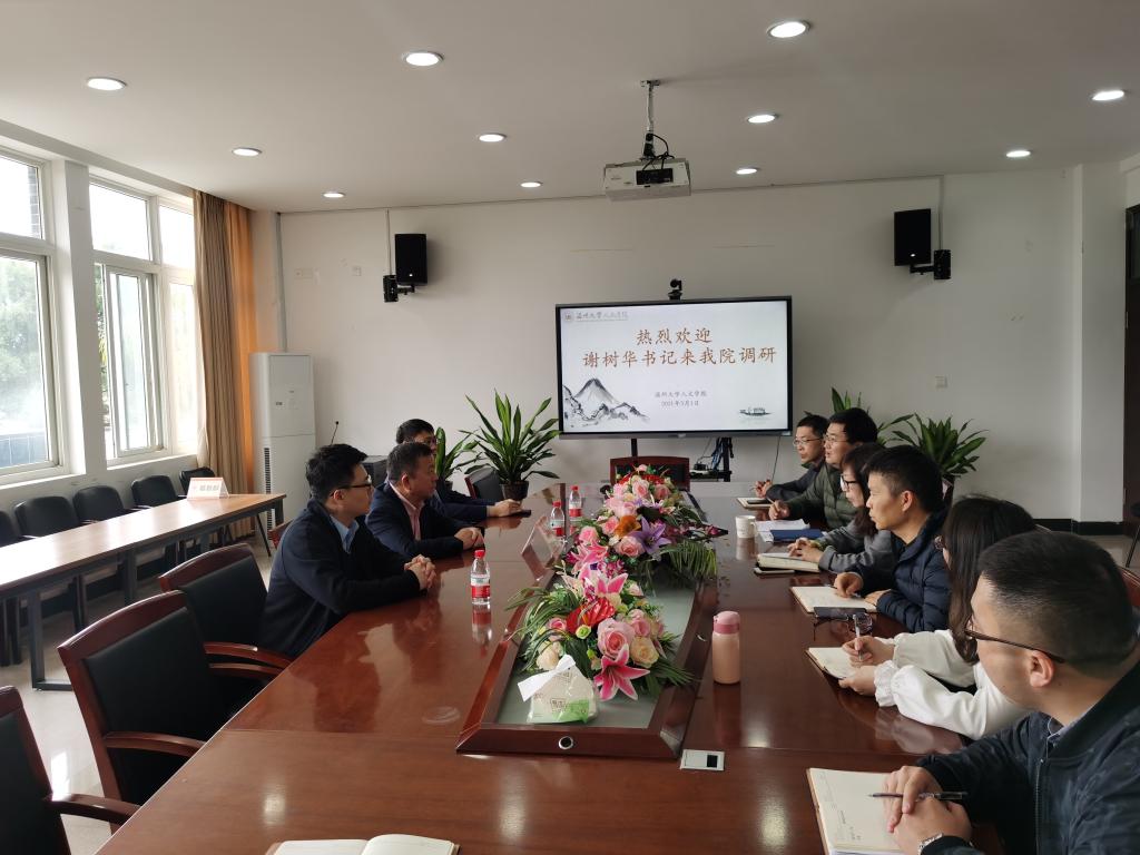 3月1日下午,校党委书记谢树华、党校办主任蔡联群走访我院,就新学期开学工作开展专项调研。调研会由吴静书记主持,财神捕鱼 班子成员参加了本次会议。