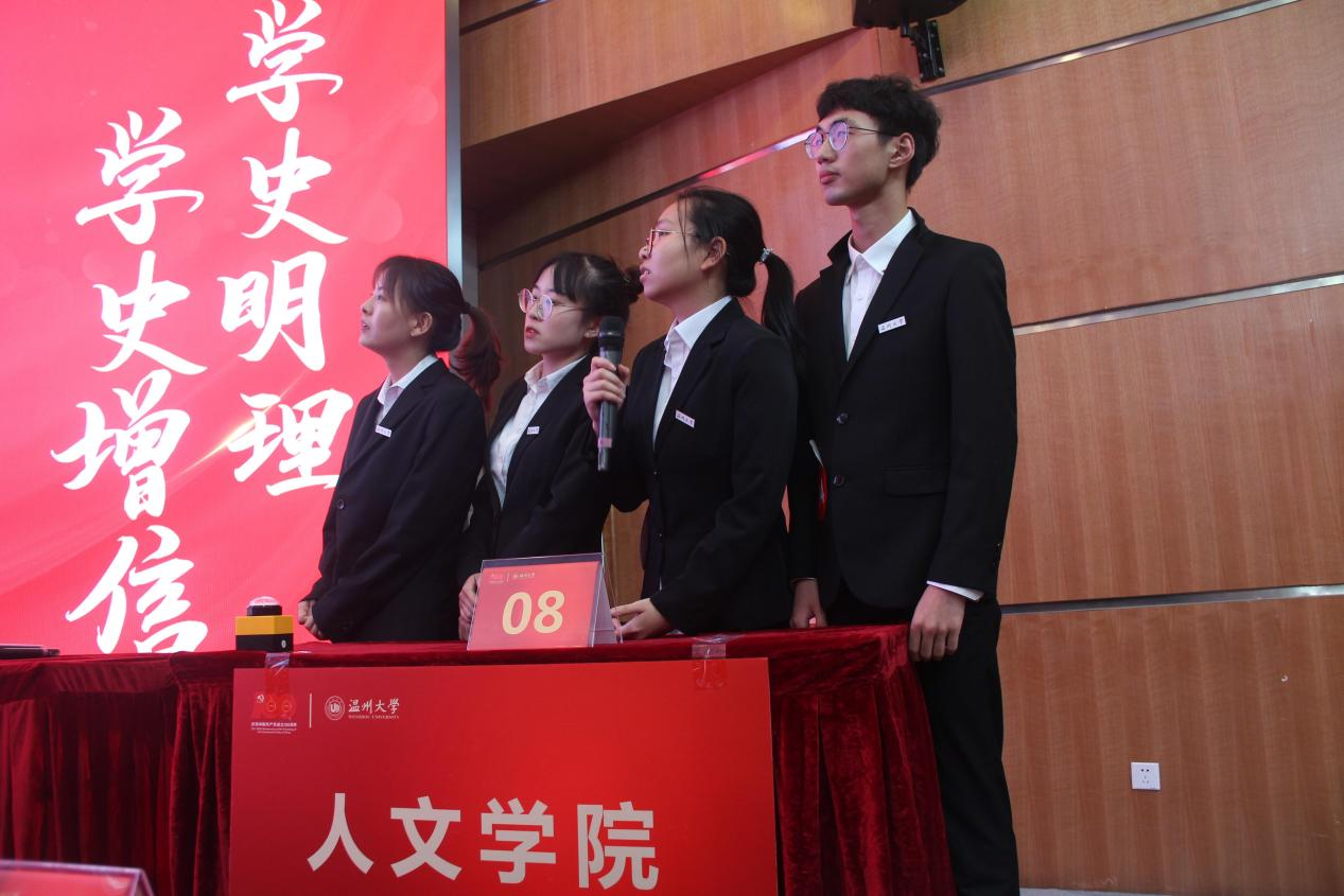 为庆祝中国共产党建党100周年,更好地引领广大党员和干部群众深入学习党的光辉历史,引导大学生以实际行动践行初心使命,从党的历史中汲取奋进力量,5月26日下午14:00,由校宣传部主办、财神捕鱼 承办的“明理·增信·崇德·力行”党史知识竞赛决赛于育英图书馆报告厅隆重举行。财神捕鱼 党委副书记庄兴忠、党委宣传部副部长吴翔之、学工部副部长王壮、校团委副书记丁强、财神捕鱼 党委副书记魏一出席,现场近两百余名来自全校各财神捕鱼 同学观赛。