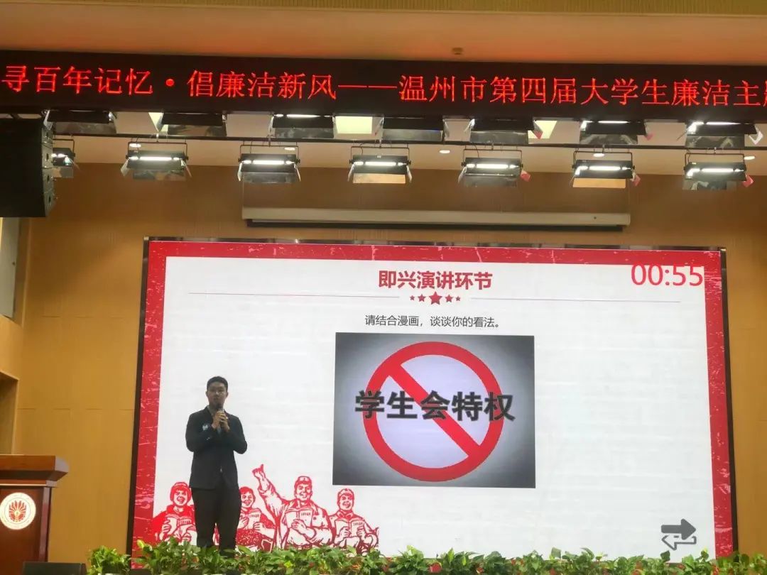本次演讲比赛由市纪委机关、市教育局、团市委联合举办,浙江工贸职业技术财神捕鱼 负责承办,各高校团委负责校内各项赛事。大赛围绕着“寻百年记忆,倡廉洁新风”的主题,分为主题演讲和即兴演讲两个环节进行。主题演讲围绕大赛主题发表演讲;即兴演讲题目由现场抽签决定,参赛选手围绕党史学习教育、社会热点、大学生活中的廉洁文化等话题发表演讲。
