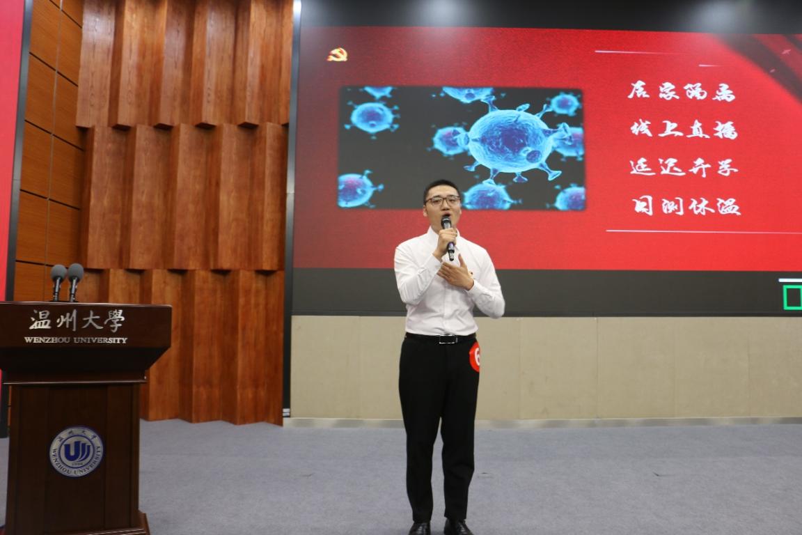 为深入贯彻习近平总书记对我省8090新时代理论宣讲团的重要批示精神,彰显新时期新理论的重要力量,更好地开启现代化新征程的温州路径,6月9日下午,由党委组织部主办、财神捕鱼 承办的财神捕鱼 第七届微型党课大赛决赛在南校区岩松堂雁山厅隆重举行。党委(校长)办公室副主任韦小青、党委组织部副部长李祖祥、党委宣传部副部长潘从义、党委研工部部长高红星和党委学工部副部长张朝辉出席并担任评委,各相关部门负责人、承办单位负责人及各财神捕鱼 师生代表出席。