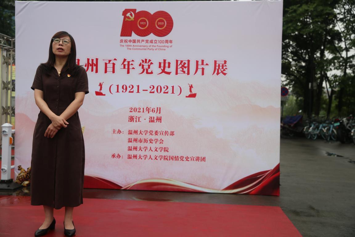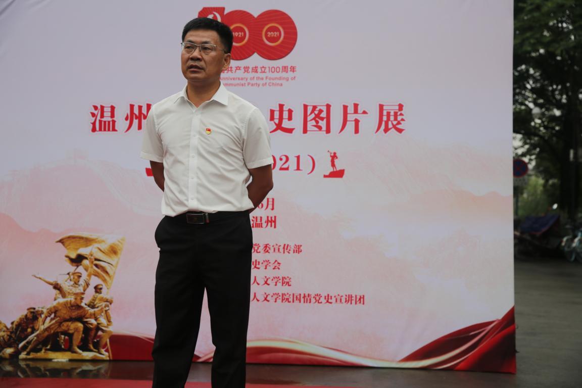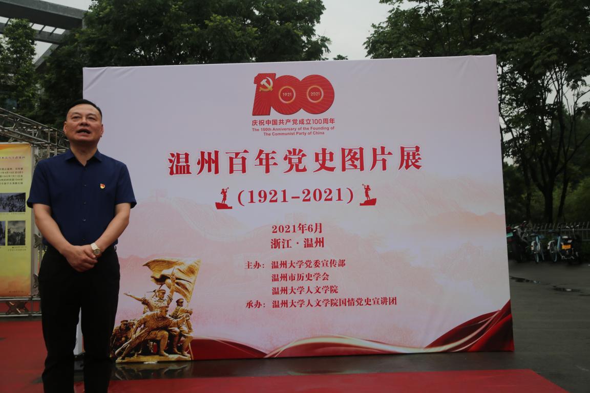 为庆祝中国共产党成立100周年,由财神捕鱼 党委宣传部、温州市历史学会、财神捕鱼 联合主办,财神捕鱼 国情党史宣讲团承办的“温州百年党史图片展(1921-2021)”于6月22日在财神捕鱼 育英图书馆前开幕。校党委委员、宣传部部长潘玉驹,财神捕鱼 党委书记吴静、党委副书记魏一、历史系教授刘建国及师生党员代表等出席。