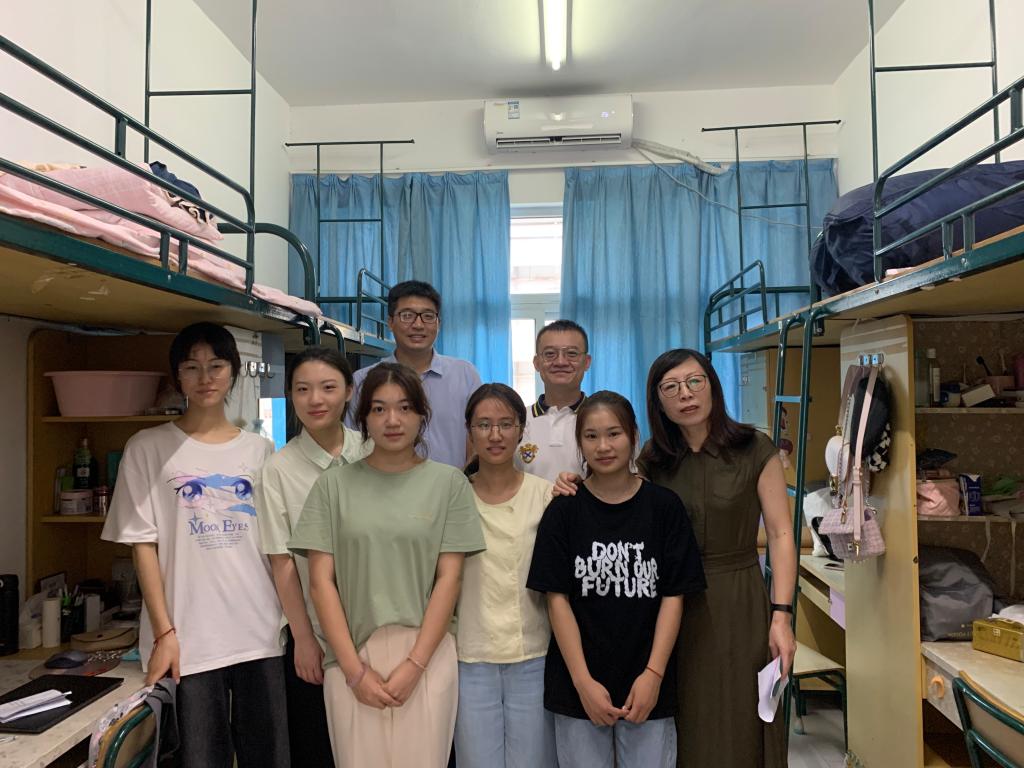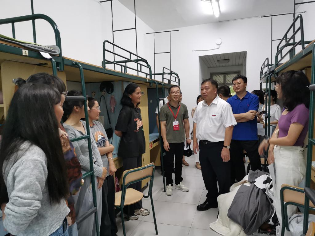 院党委副书记魏一细心询问了入学后的住宿、就餐和生活用品等生活问题,提醒学生注意寝室安全问题,还特别叮嘱新生们要注意身心健康,遇到困难及时和老师反映,共同营造良好的宿舍氛围。副院长陈源源也提醒新生们要合理规划时间,多读书、多思考,争做时代新学霸。