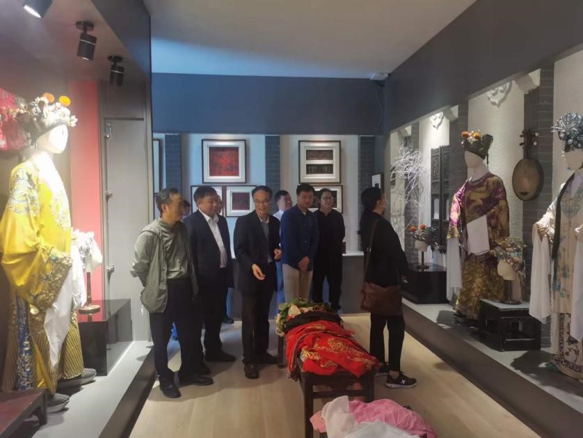 邵清一行首先参观了中心展馆,认真观赏馆内珍藏的各类戏曲服装、道具、古籍等。在参观过程中,俞为民教授对馆藏内容作了详细讲解,邵清高度肯定中心的丰富收藏和独特内涵,并提倡继续保持并发扬这种保护与传承戏曲文化的精神。