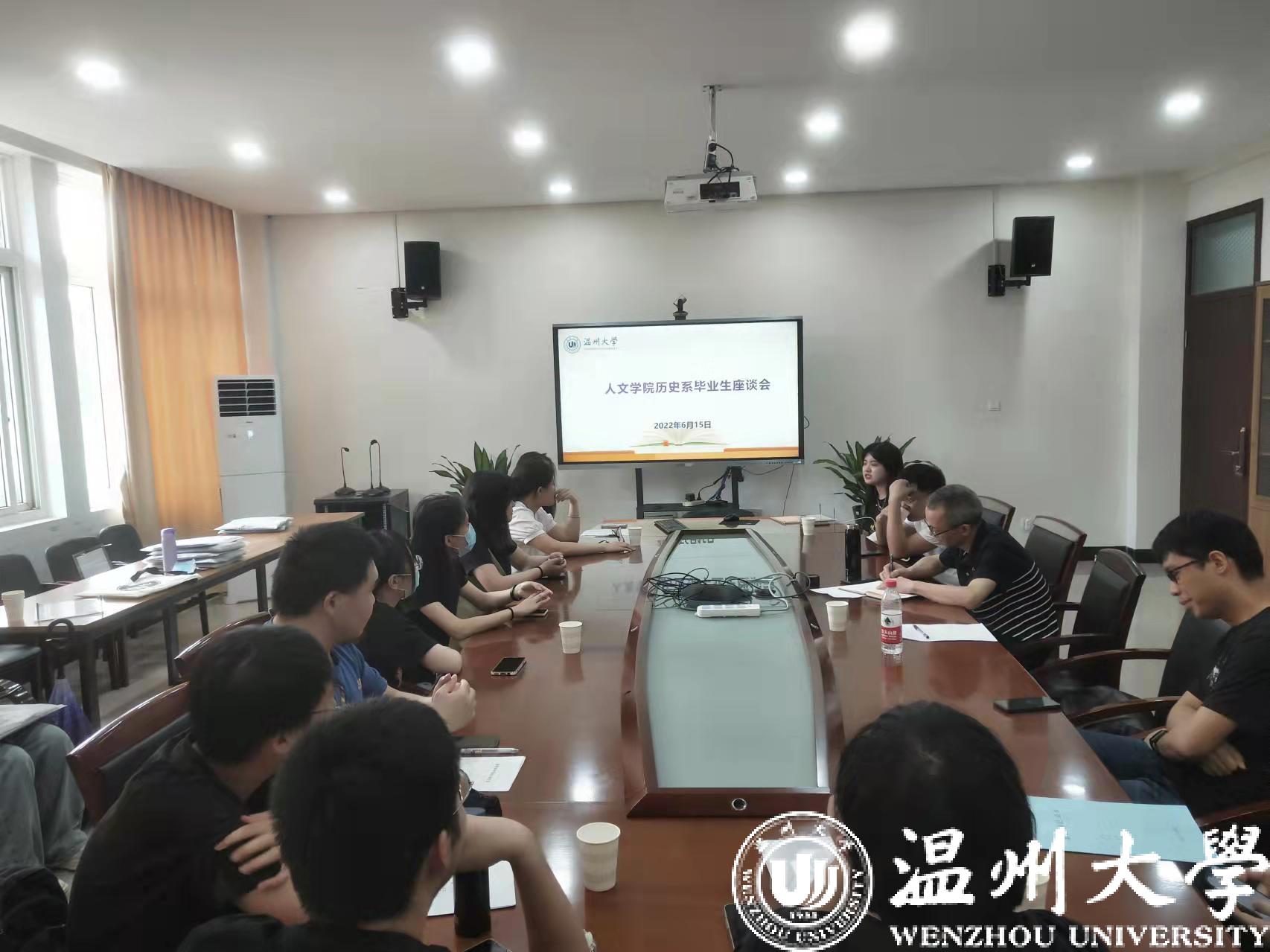 2022届本科生毕业在即,为广泛听取毕业生心声及建议意见,完善专业培养计划,更好地为学生成长成才服务,财神捕鱼 历史系于6月15日下午15点在财神捕鱼 213会议室召开毕业生座谈会。座谈会由系主任尤育号主持,出席座谈会的有刘建国、唐运冠、王印、陈鸿超等教师和18历本18名毕业生代表。