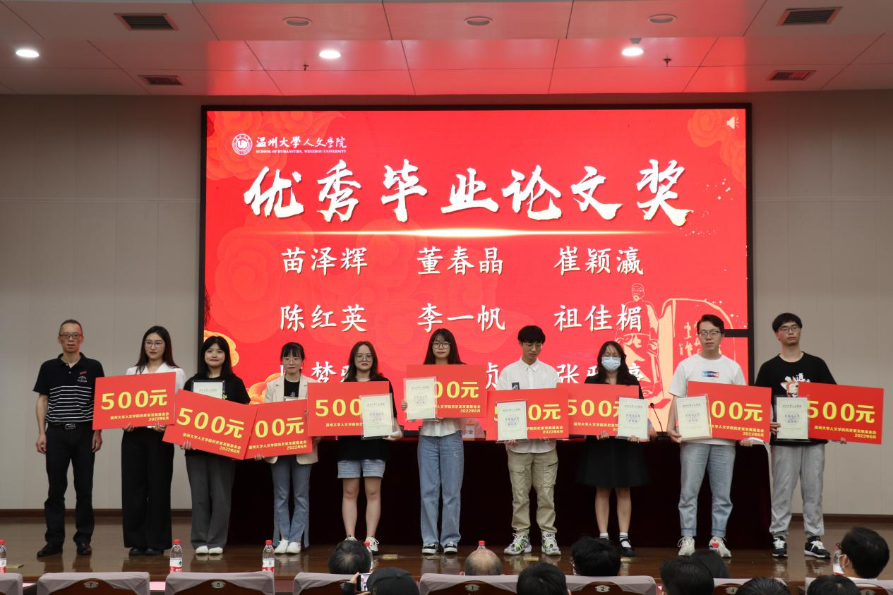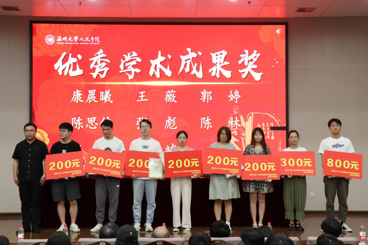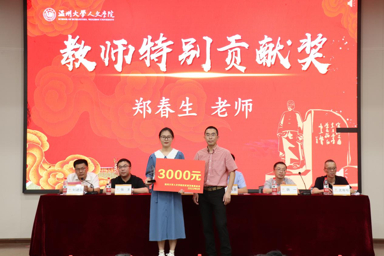 刘建国老师回顾了历史系表彰大会的发展过程,介绍了到场嘉宾。尤育号老师为大家解读了《财神捕鱼 历史系发展基金使用方法》,并对给予捐赠的校友表示感谢,希望基金能帮助更多优秀的历史系师生,助力历史学科进一步发展。颁奖环节由魏一副书记宣读获奖名单,奖项有优秀毕业论文奖、优秀学术成果奖、优秀学科竞赛奖、考研考博贡献奖和教师特别贡献奖。获奖学生依次上台领奖。郑春生老师获教师特别贡献奖,由肖心蕊同学代为领奖并发表获奖感言。郑春生老师表达了在从教三十年之际获得此项荣誉的激动之情,并希望能与诸君共勉,在生活与工作中坚持不懈地去追求“凡人”的成功和幸福,在不远的未来为历史系、财神捕鱼 ,乃至财神捕鱼 做更多贡献。
