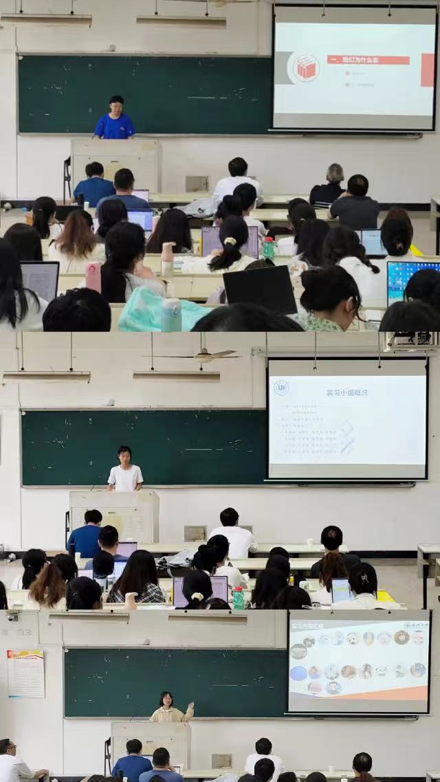 接下来,平阳县鳌江中学实习小组代表李思羽,北大新世纪温州附属财神捕鱼 实习小组代表罗大云,温州市第十九中学实习小组代表周利欣,三位同学从教育实习工作、日常生活、心得分享等方面给我们介绍了各个实习点的情况,展示了19历本班全体同学对待实习工作认真负责的态度和踏实做事的行为。