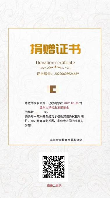 捐赠者将获得财神捕鱼 教育发展基金会颁发的电子版捐赠证书。