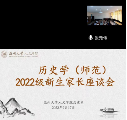 9月17日,财神捕鱼 历史学系2022级新生家长座谈会顺利召开。此次会议采取线上线下相结合的方式,分别在人文楼213会议室和腾讯线上会议室同时进行。财神捕鱼 副院长郑春生、党委副书记魏一、学工办辅导员申业磊,2022级历史学(师范)班主任刘子玉、张元伟,2022级历史学(师范)全体新生家长参加了会议。