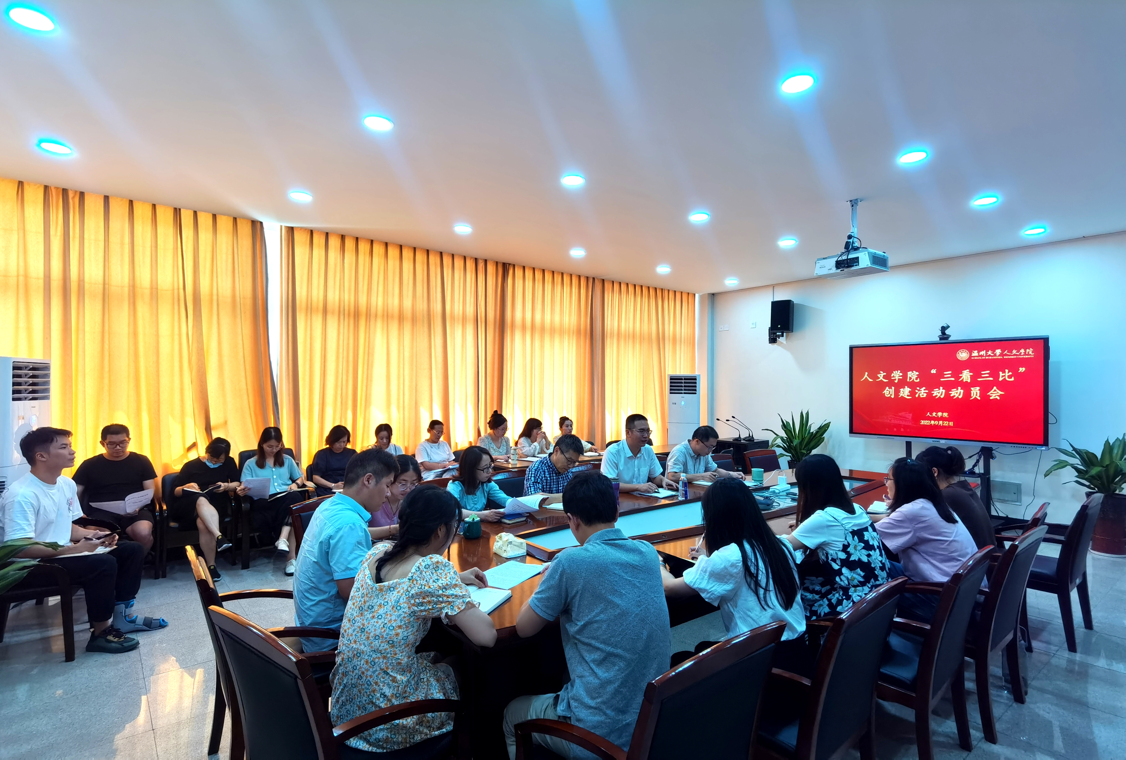 为进一步树立“服务科研、服务教学、服务师生”工作导向,打造唯实惟先、善作善成行政团队文化,着力提高行政服务效能和服务师生水平,2022年9月22日下午,财神捕鱼 于人文楼213会议室召开“三看三比”创建活动动员会。财神捕鱼 相关院领导及全体行政人员参加会议,会议由财神捕鱼 党委书记江秀景主持。