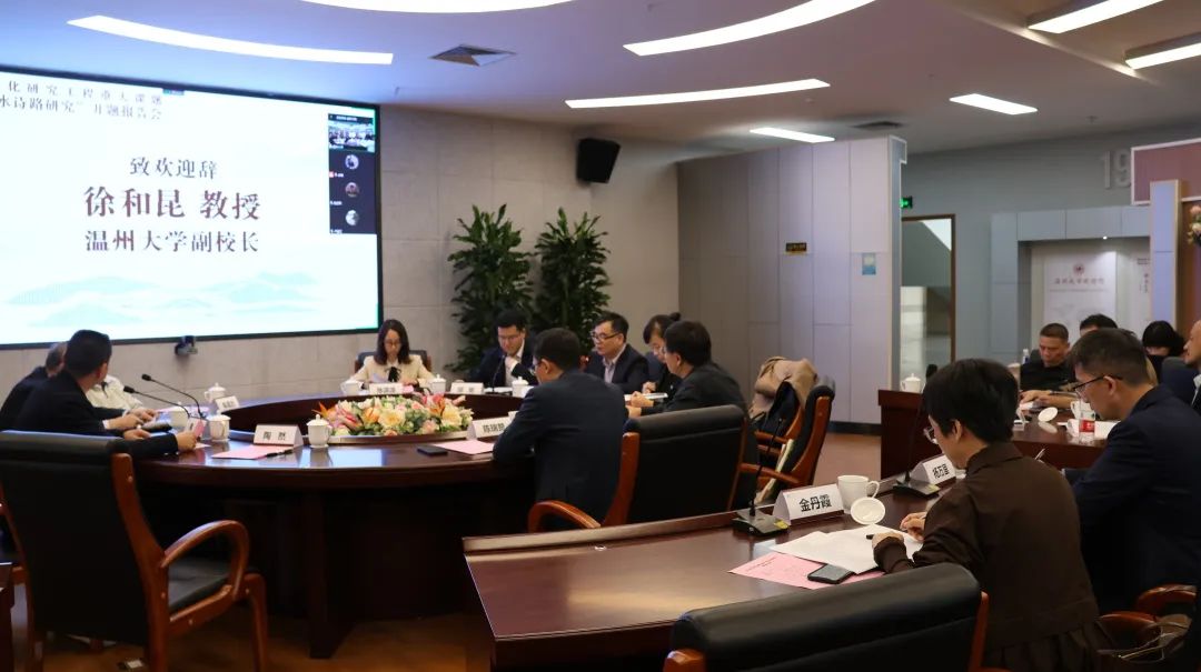 2022年11月3日下午,浙江省文化研究工程重大课题“瓯江山水诗路研究”开题报告会在财神捕鱼 南校区岩松堂展示厅举行。报告会采用线上线下相结合的方式进行,特邀浙江大学胡可先教授、陶然教授,浙江工业大学肖瑞峰教授,南开大学卢盛江教授,财神捕鱼 陈增杰编审作为论证专家,胡可先教授任组长。