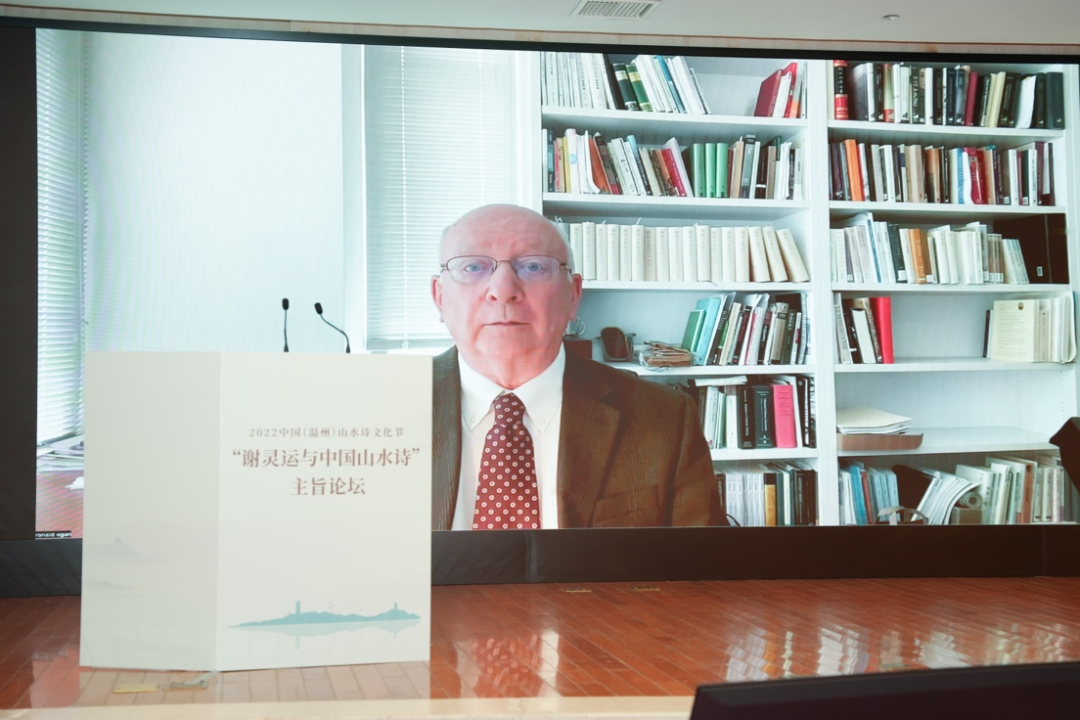 美国斯坦福教授艾朗诺线上分享了《谢灵运与后来的山水画》研究。他借助谢灵运与早期的山水诗比较研究中国绘画题材与欧洲的区别以及中国山水绘画题材的发展过程,他认为,中国山水画占据绘画的主流地位是经过长期的发展才形成的。谢灵运山水诗的贡献不仅是描写山水的美,而且让读者目睹他进入山中的心情,这种诗歌是中古时代的欧洲所没有的。