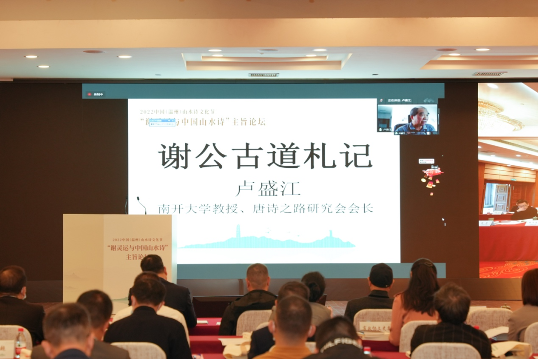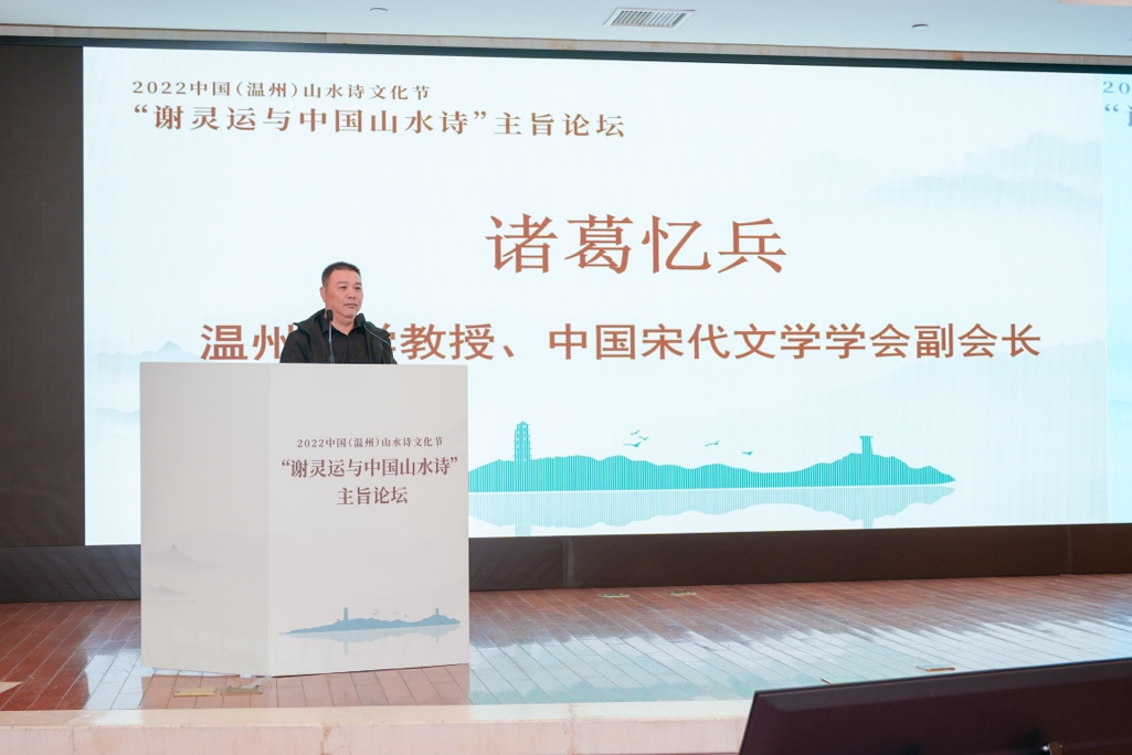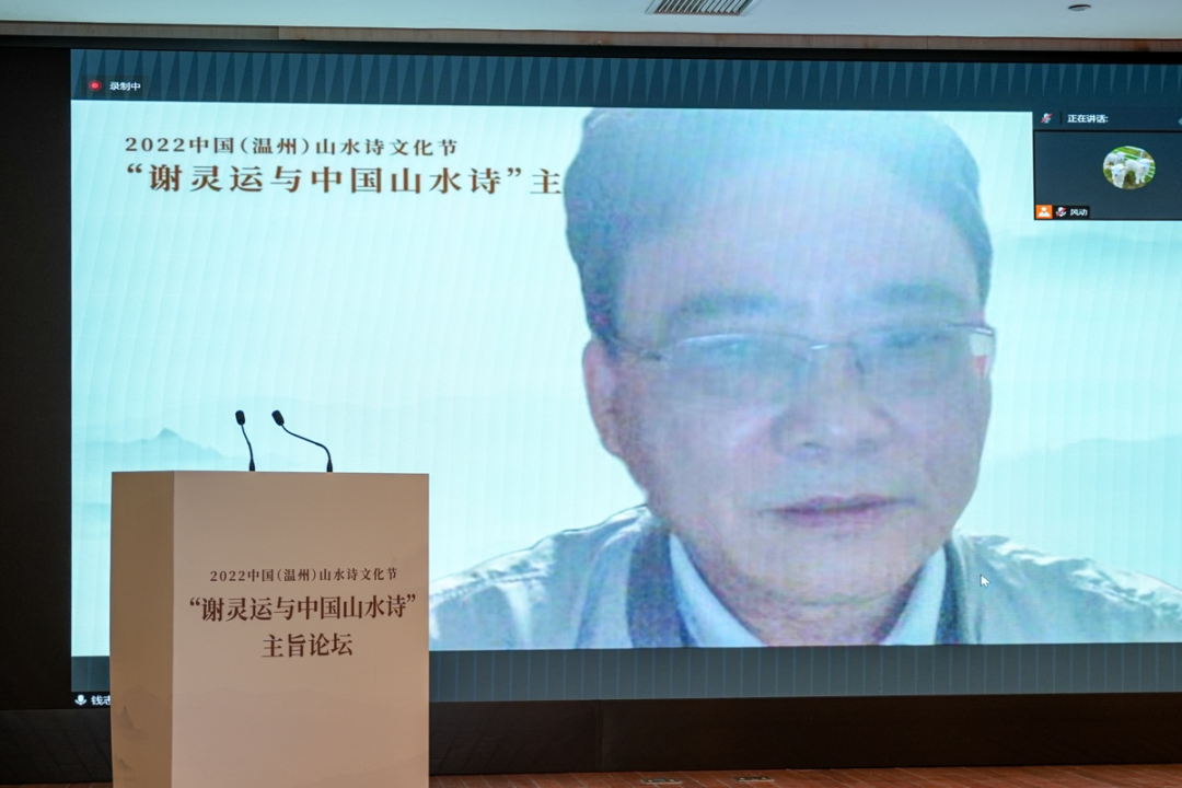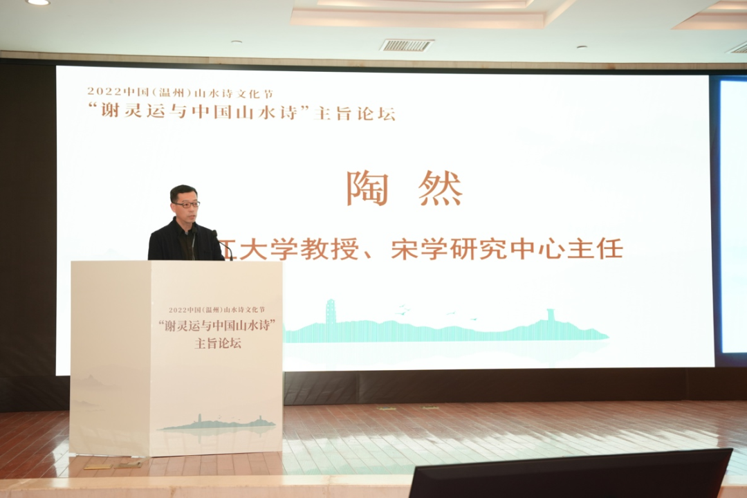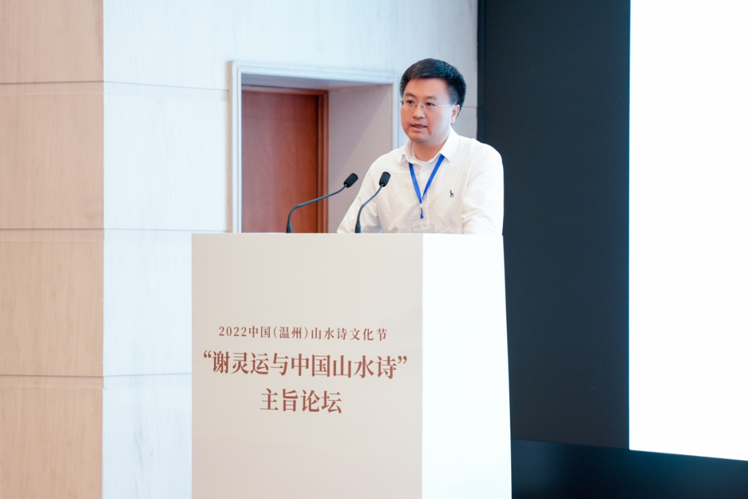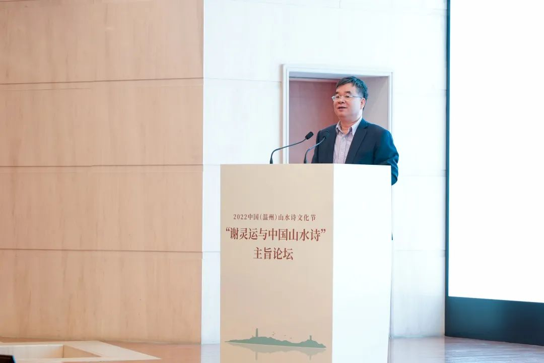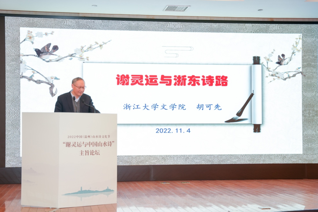 浙江大学教授、中国唐代文学学会副会长胡可先以《谢灵运与浙东诗路》为主题,论述谢灵运在石门、永嘉的山水创作,并指出谢灵运最早的山水诗作产生于他赴永嘉太守任由钱塘江赴永嘉之时,谢灵运诗是浙东诗路的渊源,浙东诗路是唐前山水诗的发源地。