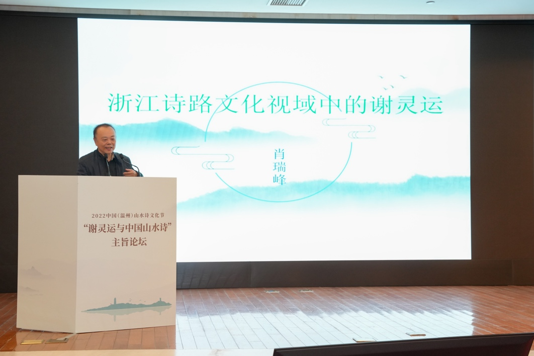 浙江工业大学教授、中国韵文学会会长肖瑞峰在题为《浙江诗路文化视域中的谢灵运》的发言中指出,谢灵运是浙江诗路文化的奠基者,在整个浙江诗路文化带中的地位、作用与影响不容小觑;谢灵运又是浙江诗路文化的启沃者,不仅是描绘浙江诗路的先驱,而且创建了一种寓情志于山水的写作模式,为李白及所有描写浙江诗路的后代诗人示以法门、度以金针。