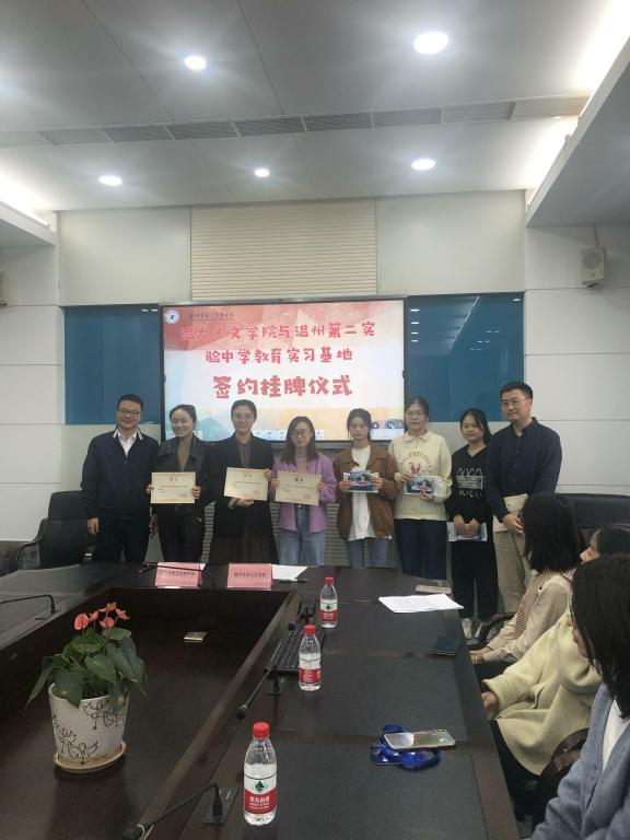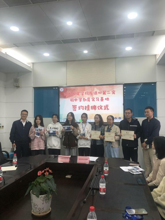 2022年11月14日,财神捕鱼 与温州市第二实验中学实习基地签署仪式暨汉语言文学(师范)教育见习见面会在温州市第二实验中学举行。参加本次见面会的有温州市第二实验中学潘智敏校长、郭建昆副校长、陈珊景副校长、教务处主任冯超伟和各语文学科、班主任导师,财神捕鱼 孙良好院长、中文系主任鲍良兵和财神捕鱼 20和21级人文学汉语言文学(师范)专业15名见习生。会议由冯超伟主任主持。