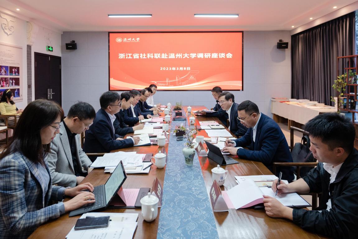 3月8日下午,浙江省社科联党组书记、副主席郭华巍一行莅临浙江传统戏曲研究与传承中心调研指导工作。浙江省社科联办公室主任陈名义,温州市社科联党组书记、主席潘晓勇,温州市社科联办公室工作人员蔡海州等陪同调研。校党委书记张健、校长赵敏、副校长徐和昆、党委(校长)办公室主任蔡联群、人文社科处处长胡瑜、华侨财神捕鱼
