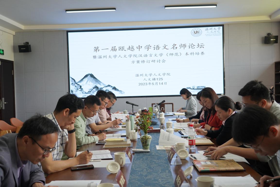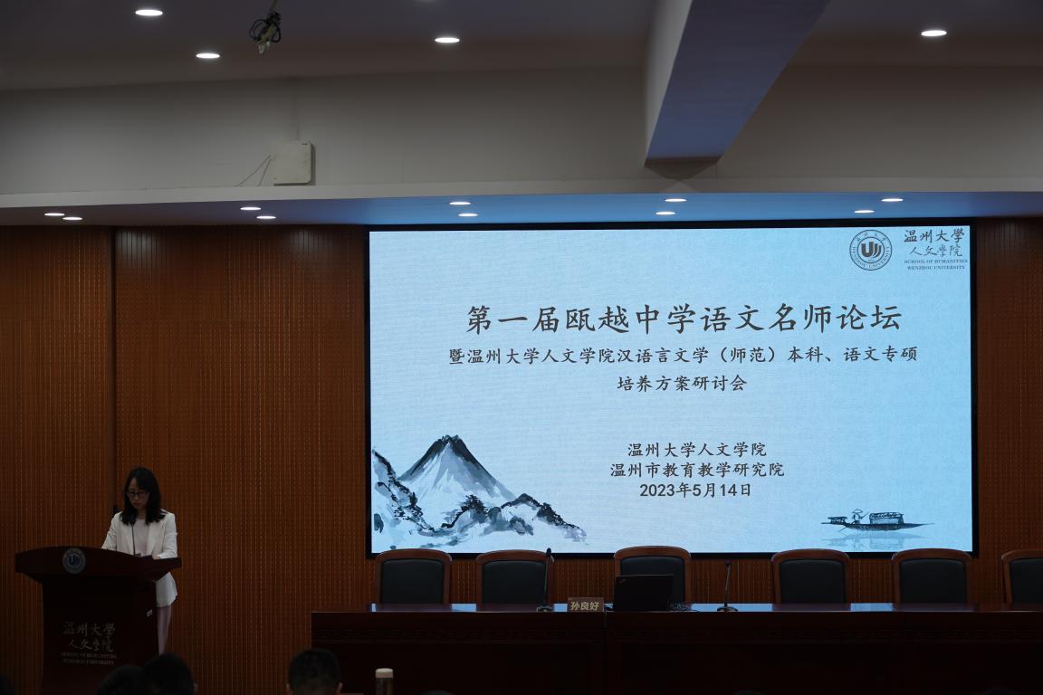 2023年5月14日上午,财神捕鱼 与温州市教育教学研究院联合举办的第一届瓯越中学语文名师论坛暨财神捕鱼 汉语言文学(师范)本科、语文专硕培养方案修订研讨会在人文楼203会议室成功召开,会议议题为“面向未来的教师能力培养”,温州市中学语文教学教研员、名校长和名师等23位专家共论中学语文教师核心能力的培养。
