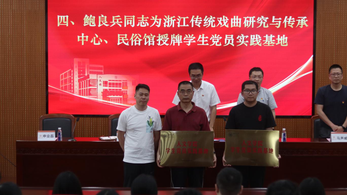 党委委员鲍良兵同志为戏曲中心、民俗馆授牌学生党员实践教育基地,举行了师生党支部结对共建签约仪式和财神捕鱼 党建文化长廊规划启动仪式。
