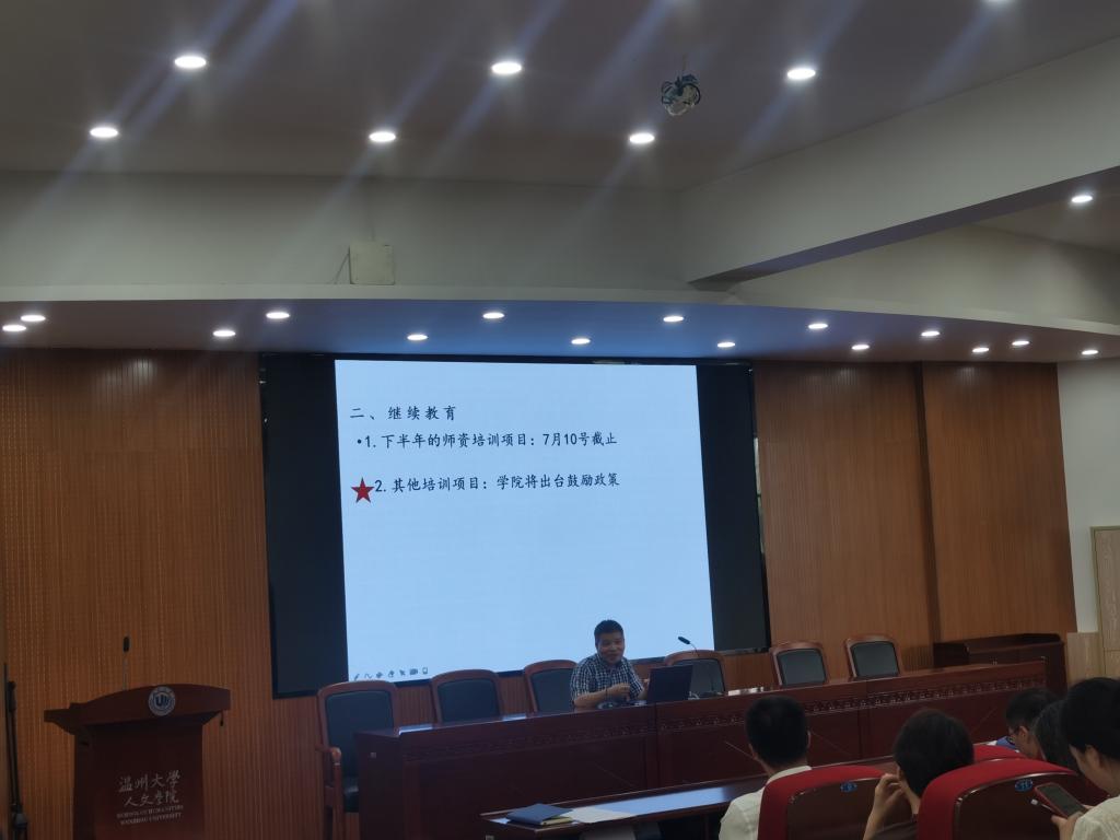 7月7日下午,人文财神捕鱼 期末教工大会在人文楼203会议室召开。财神捕鱼 领导班子,全体教职工参加会议。会议由院党委书记江秀景同志主持。