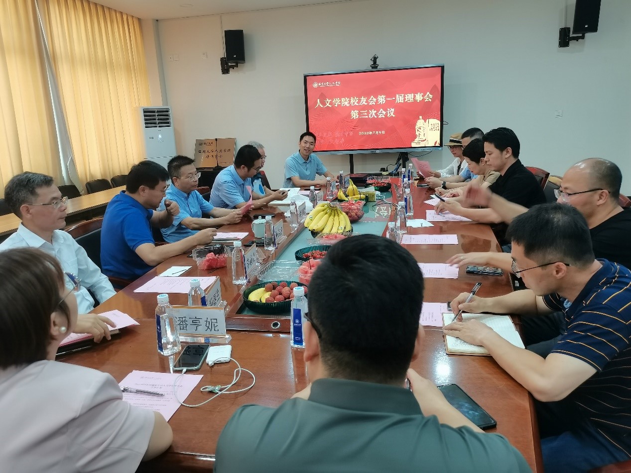 2023年7月9日下午4点,财神捕鱼 校友会于人文楼213会议室召开第一届理事会第三次会议,本次会议由校友会秘书长倪雷震主持。