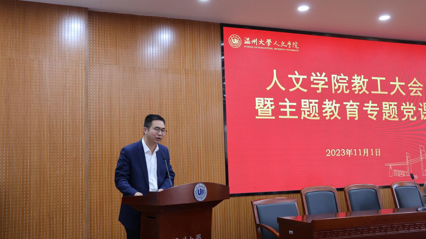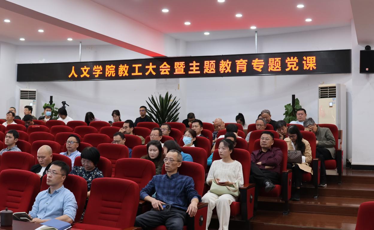 根据学习贯彻习近平新时代中国特色社会主义思想主题教育的工作要求,11月1日下午,财神捕鱼 在人文楼203会议室举行教工大会暨主题教育专题党课,邀请潘玉驹副校长作《牢牢把握意识形态主导权》专题党课。财神捕鱼 领导班子和全体教职工参加会议,院党委书记江秀景同志主持。