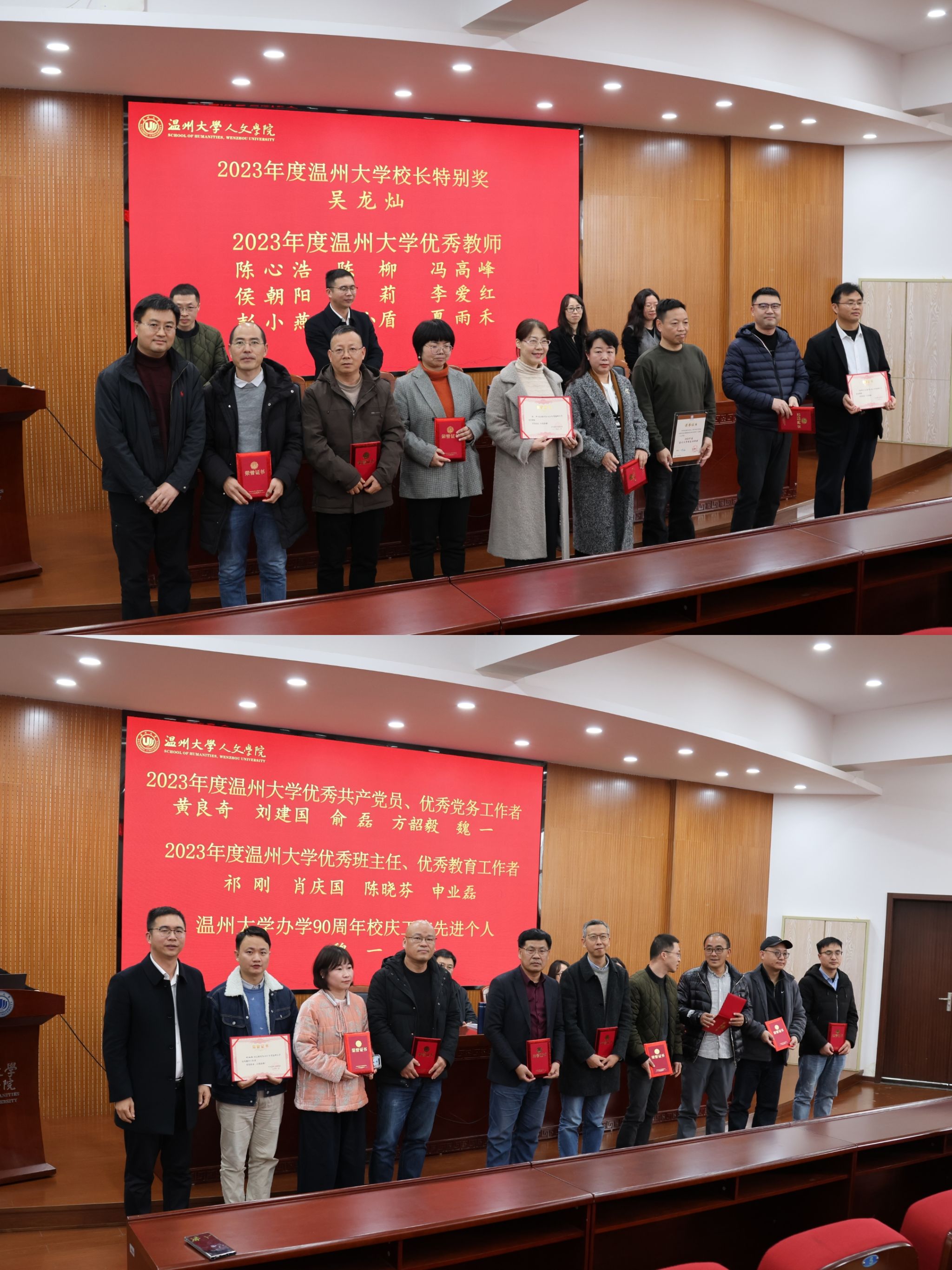 各类奖项的教师名单,孙良好院长和江秀景书记分别对获奖教师进行了表彰,向他们表达了诚挚的祝贺。