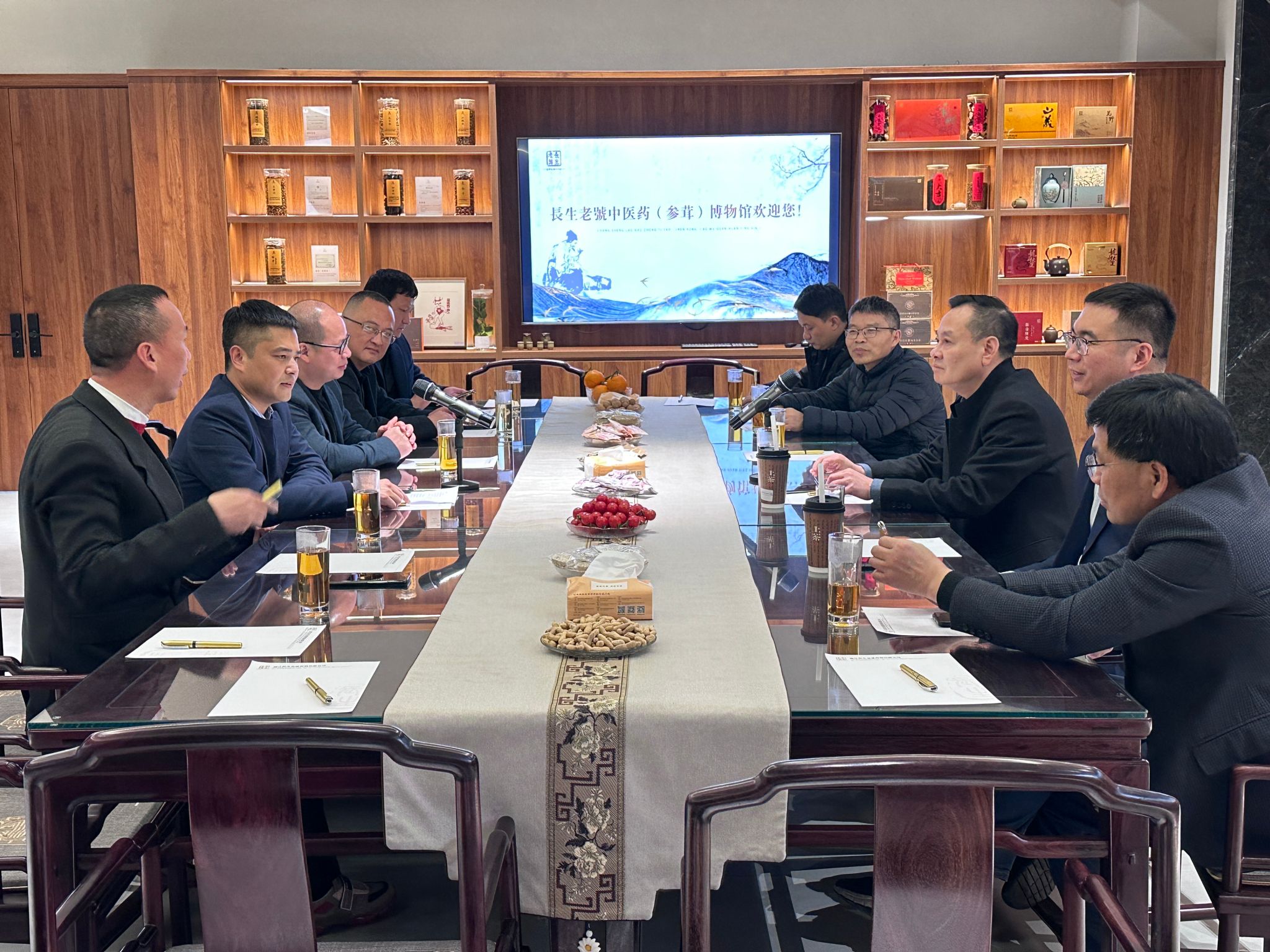 在苍南县副县长管素叶的陪同下,一行人参观调研了苍南书城、中医药参茸博物馆,随后进行了座谈。