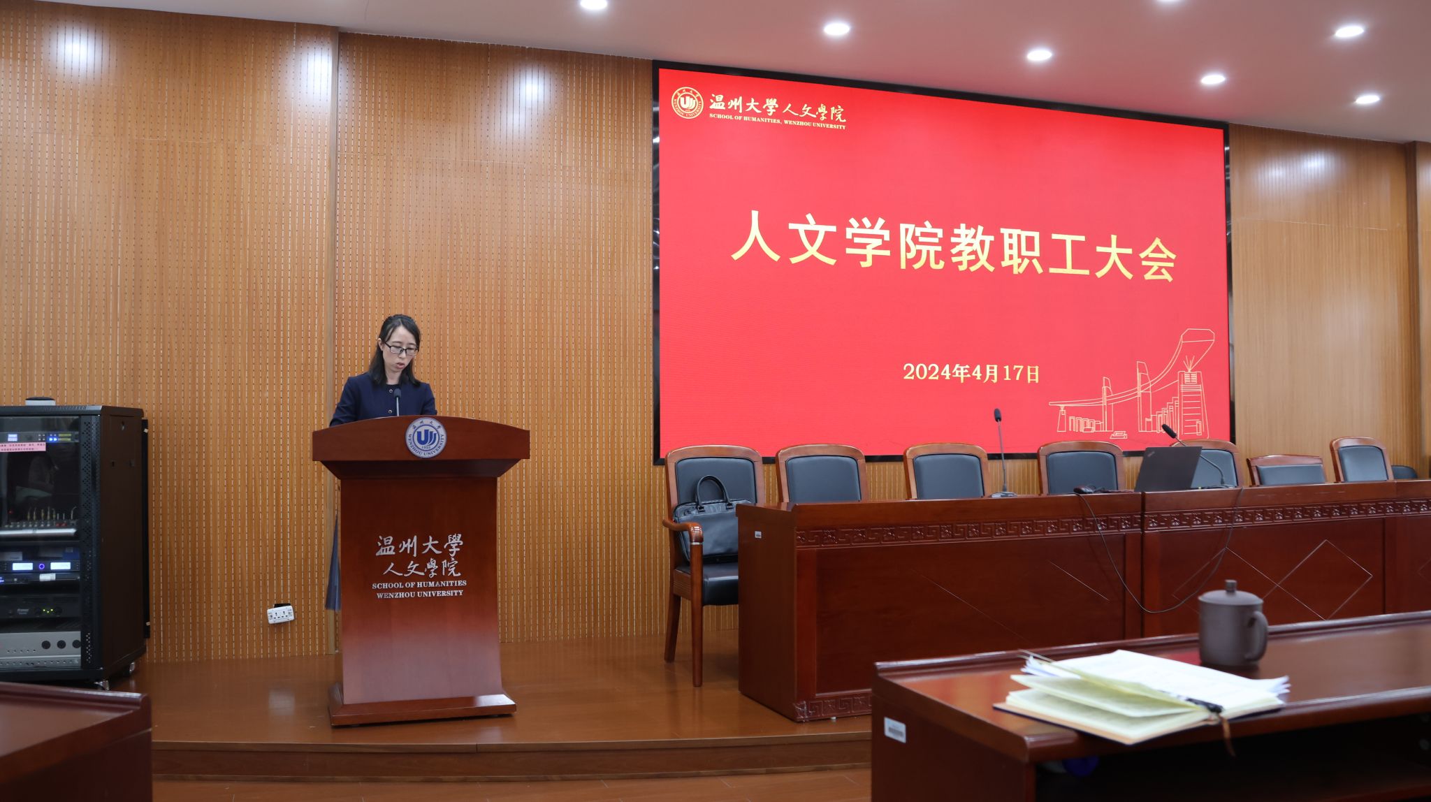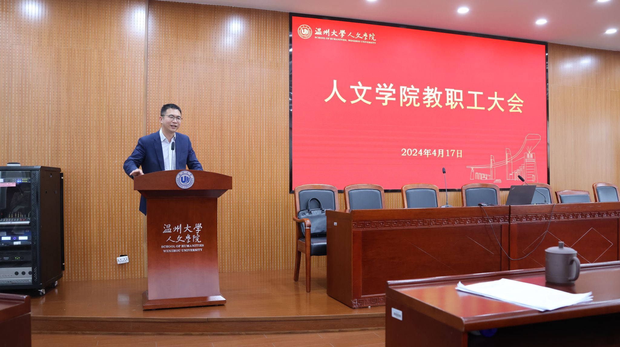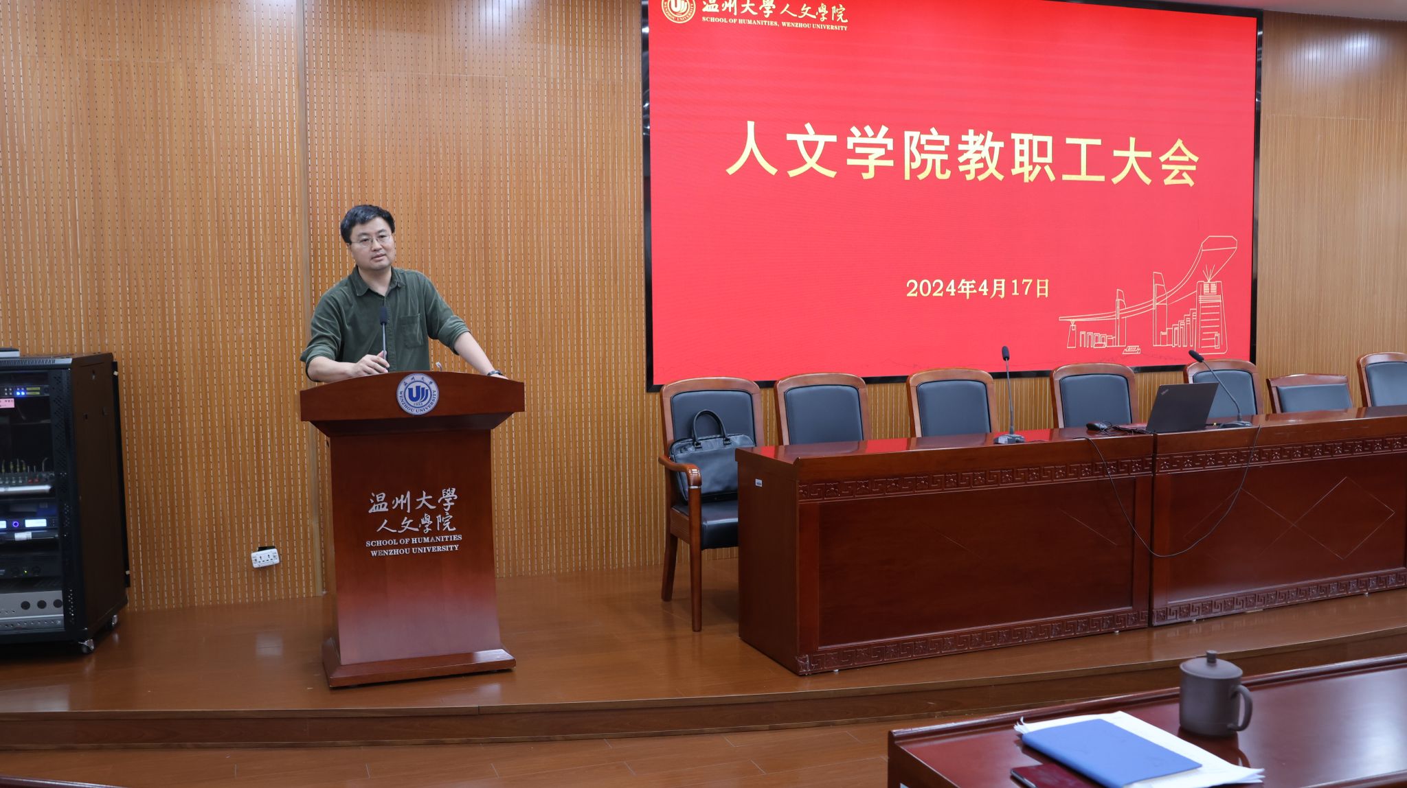 4月17日下午,人文财神捕鱼 教职工大会在人文楼203报告厅召开。财神捕鱼 领导班子及全体教职工参加会议。会议由院党委书记江秀景同志主持。