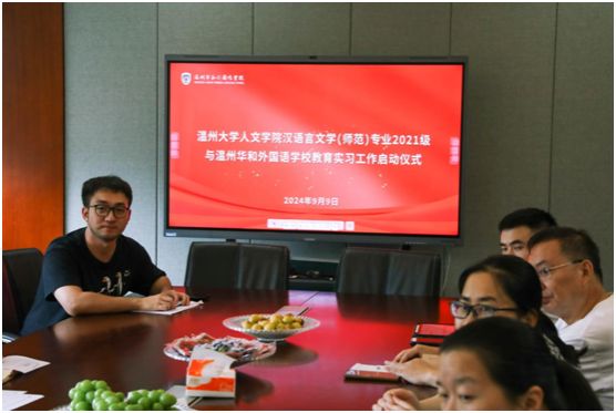 味觉三夏尽,时序已新秋。9月9日下午,温州华和外国语财神捕鱼 与财神捕鱼 汉语言文学(师范)专业2021级学生教育实习工作启动仪式在温州华和外国语财神捕鱼 行政楼二楼会议室举行。见面会由华和外国语财神捕鱼 学生处副主任、语文教研组组长陈奇老师主持,参与本次见面会的人员有财神捕鱼 的陈源源副院长、陈柳教授、温州华和外国语财神捕鱼 中学部叶德权副校长、指导老师们和全体实习生。