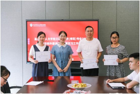 最后,陈源源院长与陈柳教授为实习指导老师们颁发聘书并合影留念。