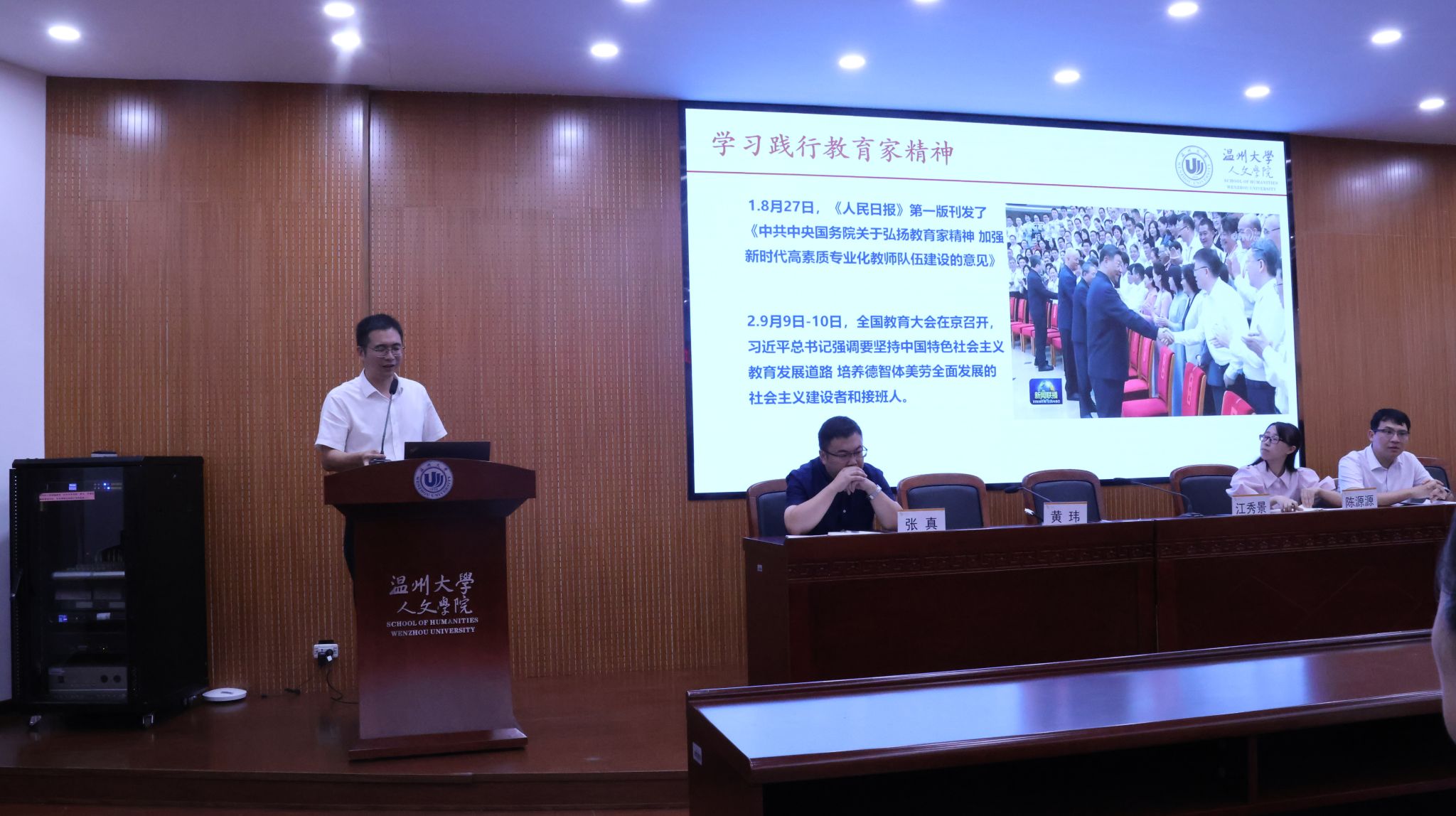 2024年9月11日下午,财神捕鱼 召开教职工大会暨弘扬教育家精神学习会。财神捕鱼 领导班子,全体教职工参加会议。会议由院党委书记江秀景同志主持。