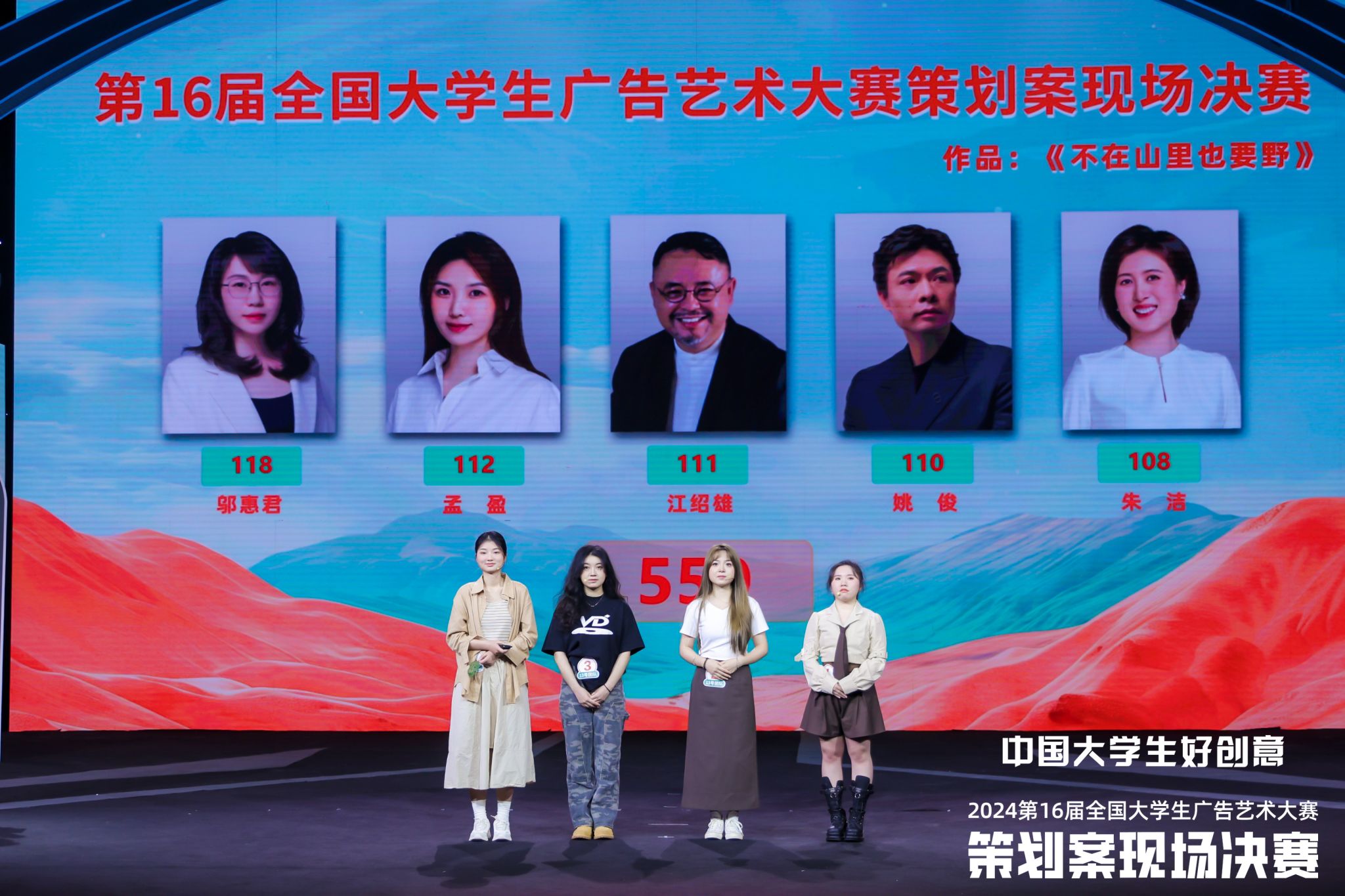 第16届全国大学生广告艺术大赛优秀作品众多,组委会从入围全国的20545件策划案中,经过层层选拔,评审出19件获得全国二等奖及以上荣誉的策划案作品,再通过现场陈述、提案、答辩,按照评委打出的总分进行排名,本届策划案现场提案决赛财神捕鱼 展演的《不在山里也要野》得到了学界、业界评委们的综合好评与广泛认可。划案现场提案决赛不仅是对高校广告创意人才的一次大考,也成为大学生们展示创意实力和综合才华的舞台。